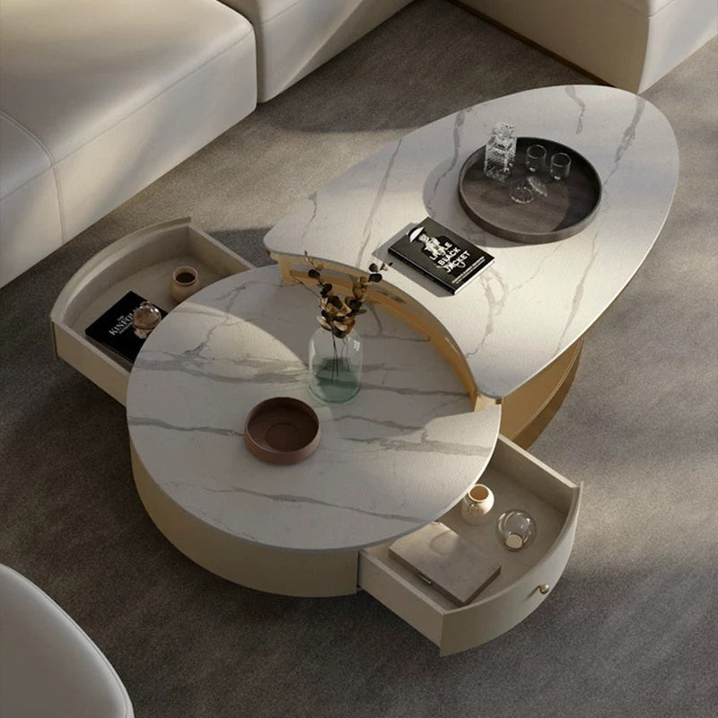 彫刻のような有機的シルエットと二層構造が、リビングに凛とした存在感をもたらします。