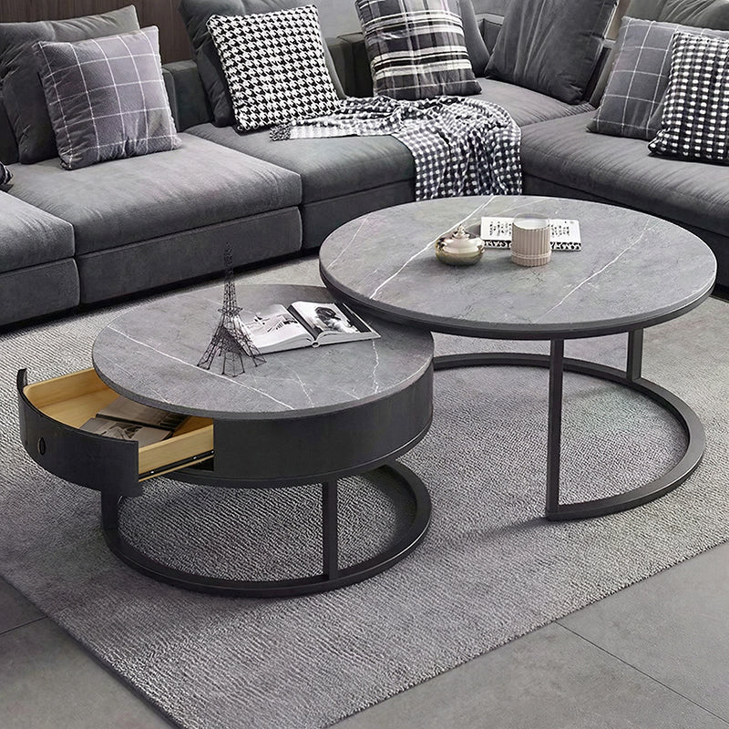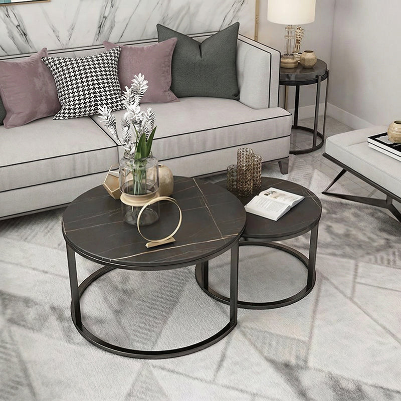 落ち着いた色味のマーブル模様の天板と、スチール脚を組み合わせた、ミニマルモダンなデザインのローテーブルです。
