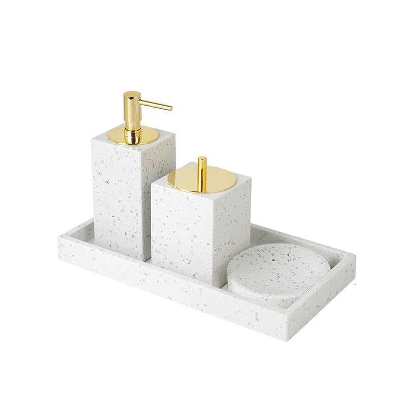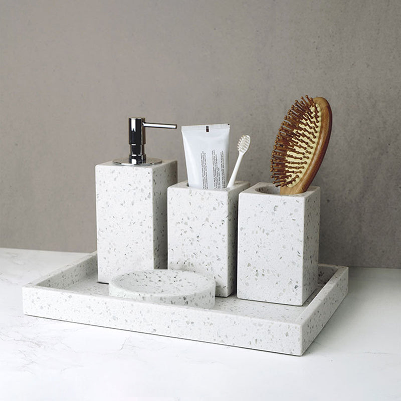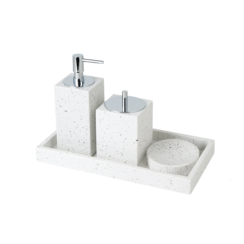 ☆安心の100日間返品交換保証☆高級感あふれるデザインの大理石模様のドット柄が施されており、モダンで洗練された雰囲気を醸し出しています。さらに、プレートが付属しており、トイレタリーアイテムを整理整頓しやすく、スッキリと使いたい方に最適です。