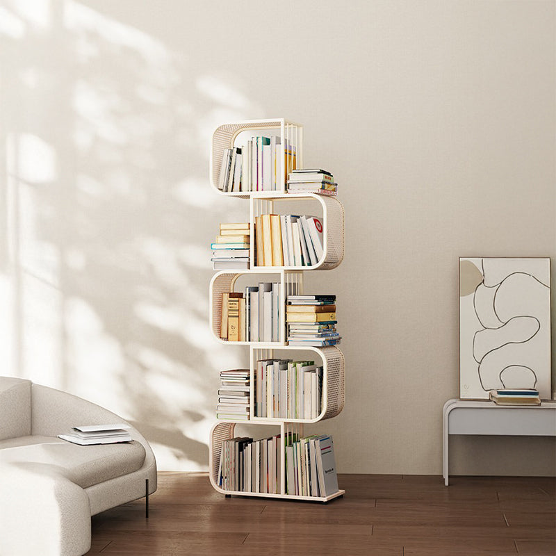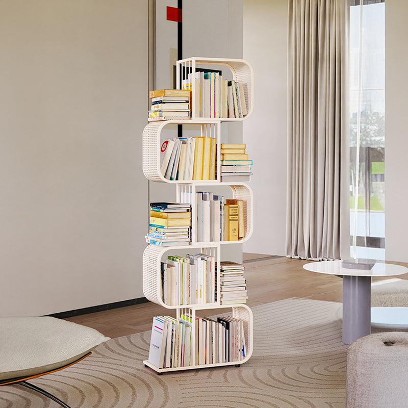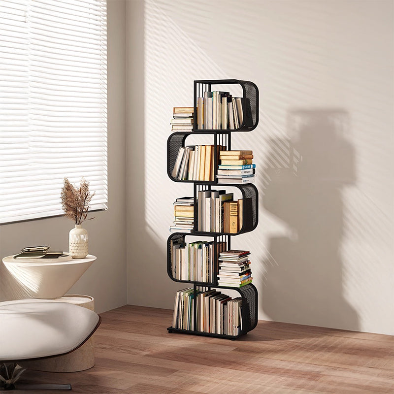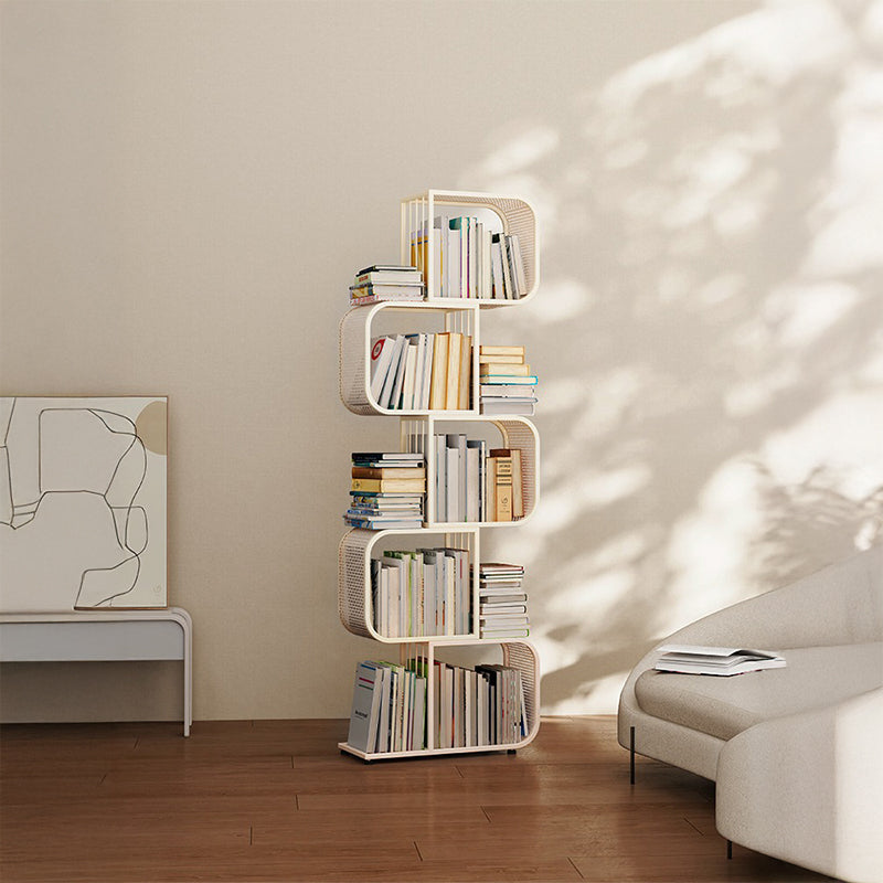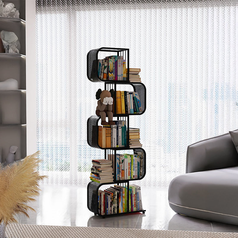 丸みのある曲線フォルムとオープン構造が、空間に軽やかでモダンな印象をもたらす本棚・ディスプレイラック。メタル素材のシャープさと柔らかなラインが洗練された雰囲気を演出します。