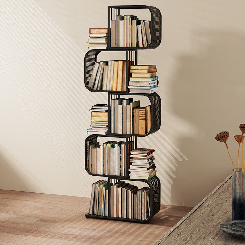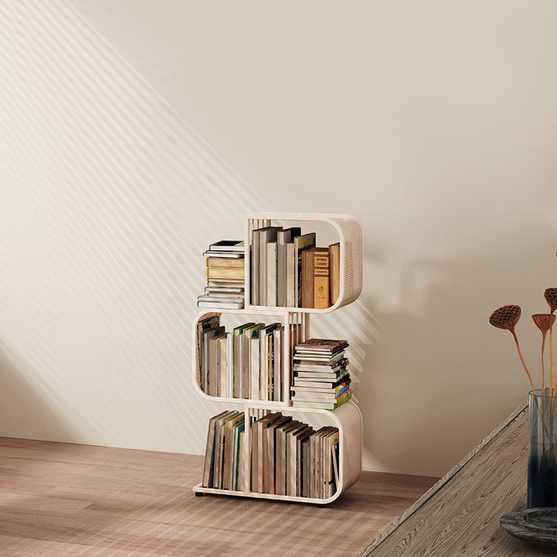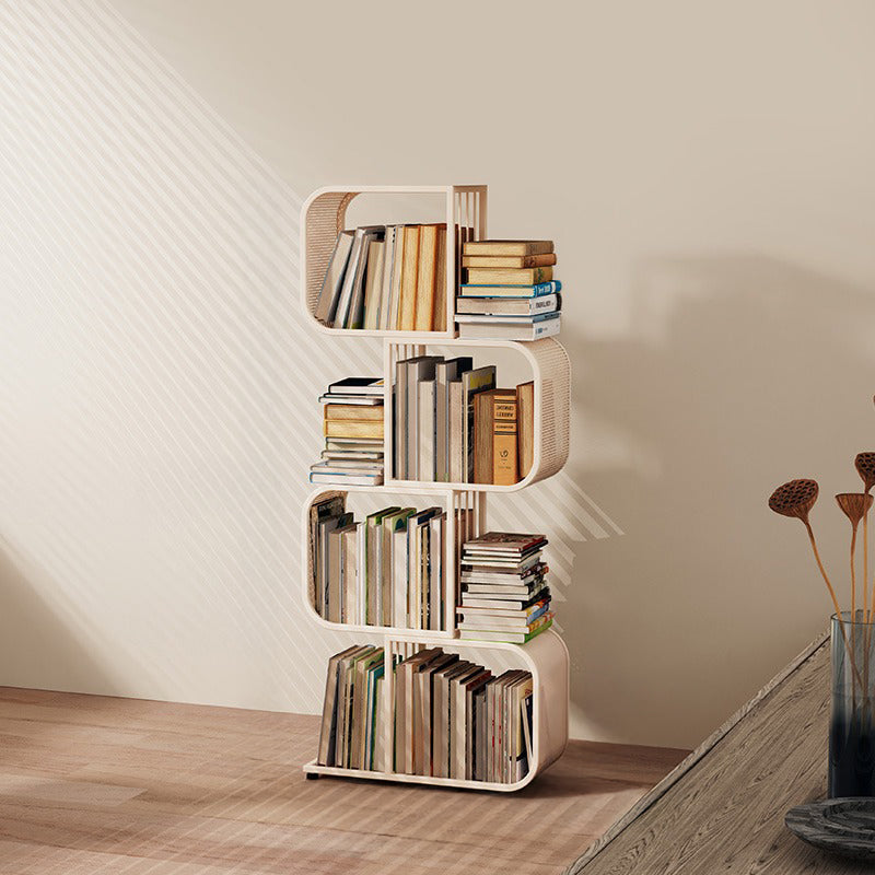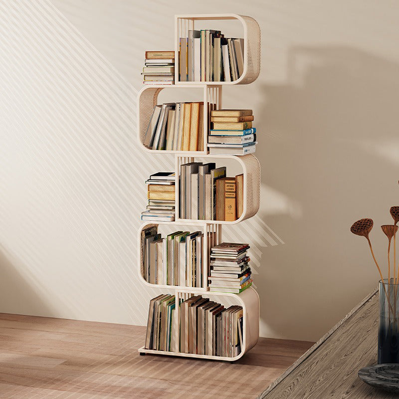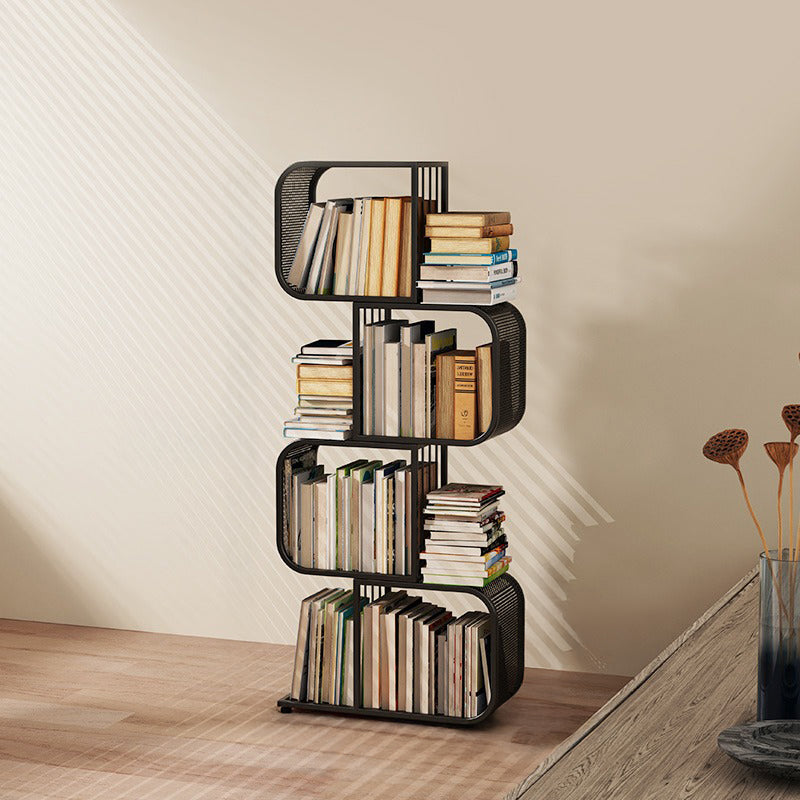 丸みのある曲線フォルムとオープン構造が、空間に軽やかでモダンな印象をもたらす本棚・ディスプレイラック。メタル素材のシャープさと柔らかなラインが洗練された雰囲気を演出します。