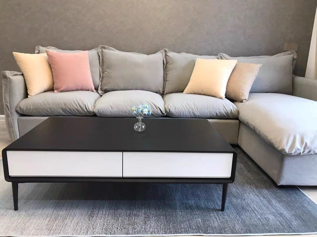 空間をすっきりとまとめるデザインと機能が、毎日の生活に快適さをもたらします。ローテーブルの天板にはプリント合板を使用し、木の質感をリアルに再現しています。