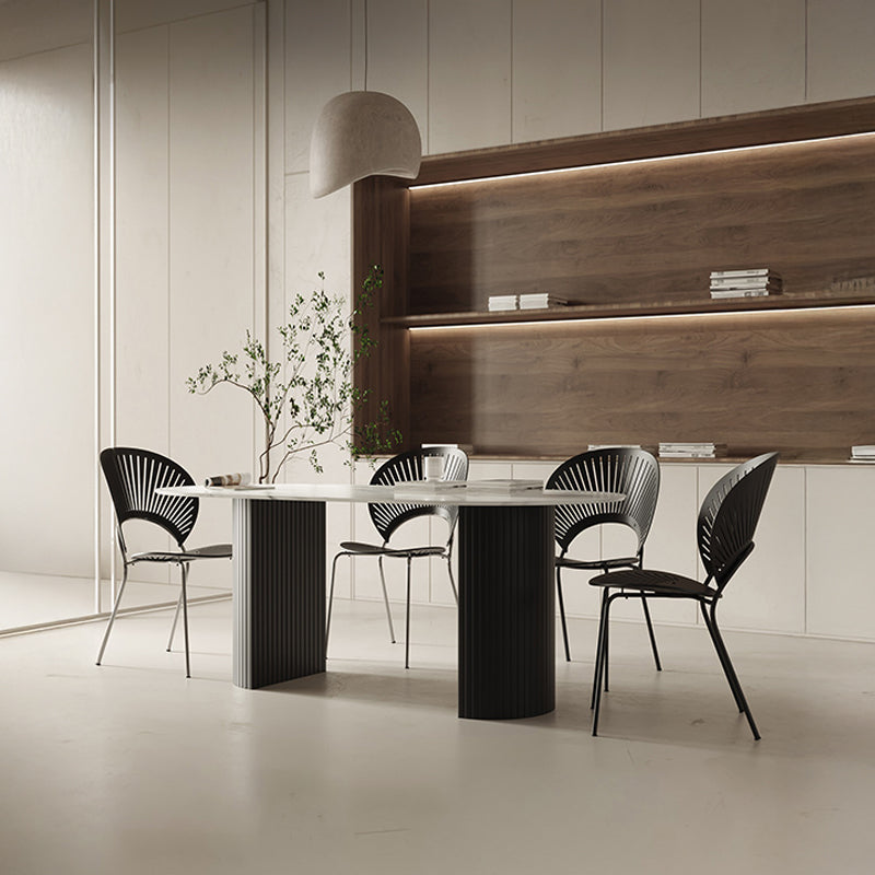 ミニマルで洗練された佇まいは、ダイニングはもちろん、応接スペースやハイエンドなオフィスにも自然に調和します。