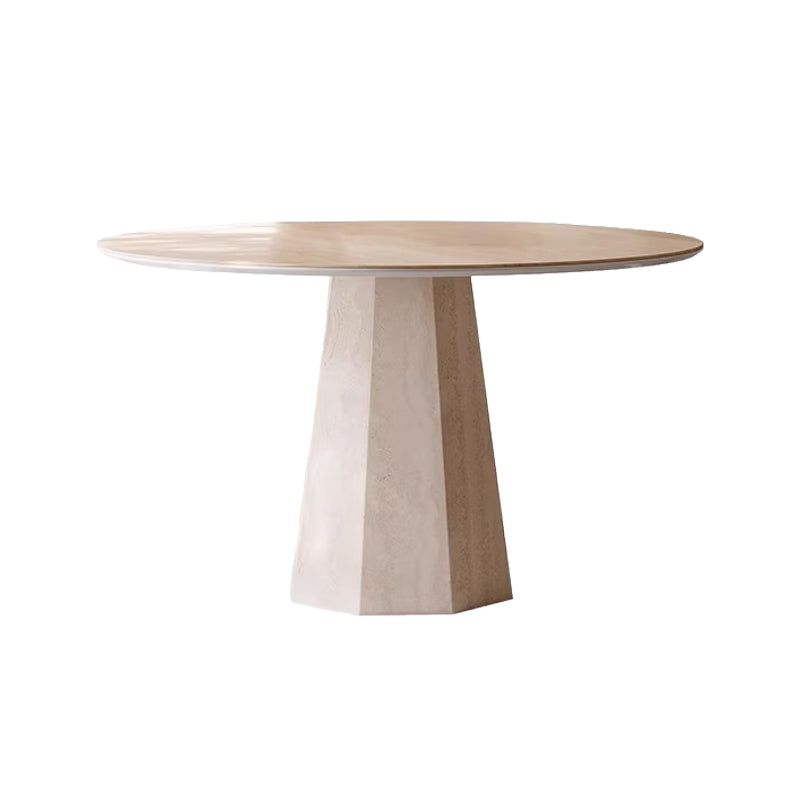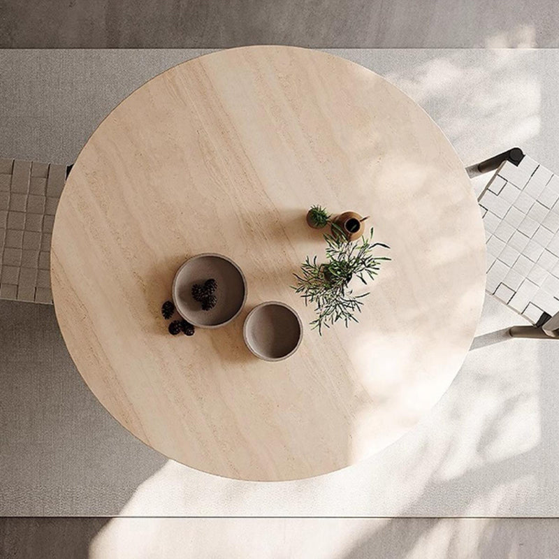 高級シントレードストーンの丸天板は、天然石のような穏やかな模様と柔らかな光沢が調和し、空間に落ち着いた上質感をもたらします。