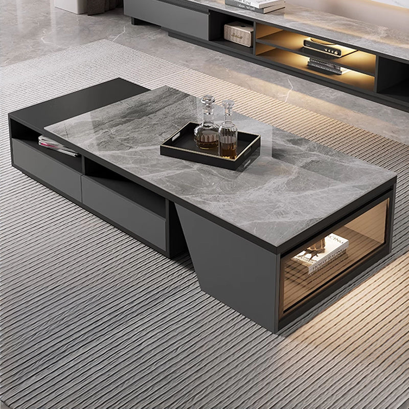 高級シントレードストーンとメタルフレームを組み合わせた、モダンで洗練されたデザインのローテーブルです。天板のシントレードストーンは、防炎効果抜群の耐熱性と、傷に強いモース硬度7級の高い耐摩耗性を誇ります。