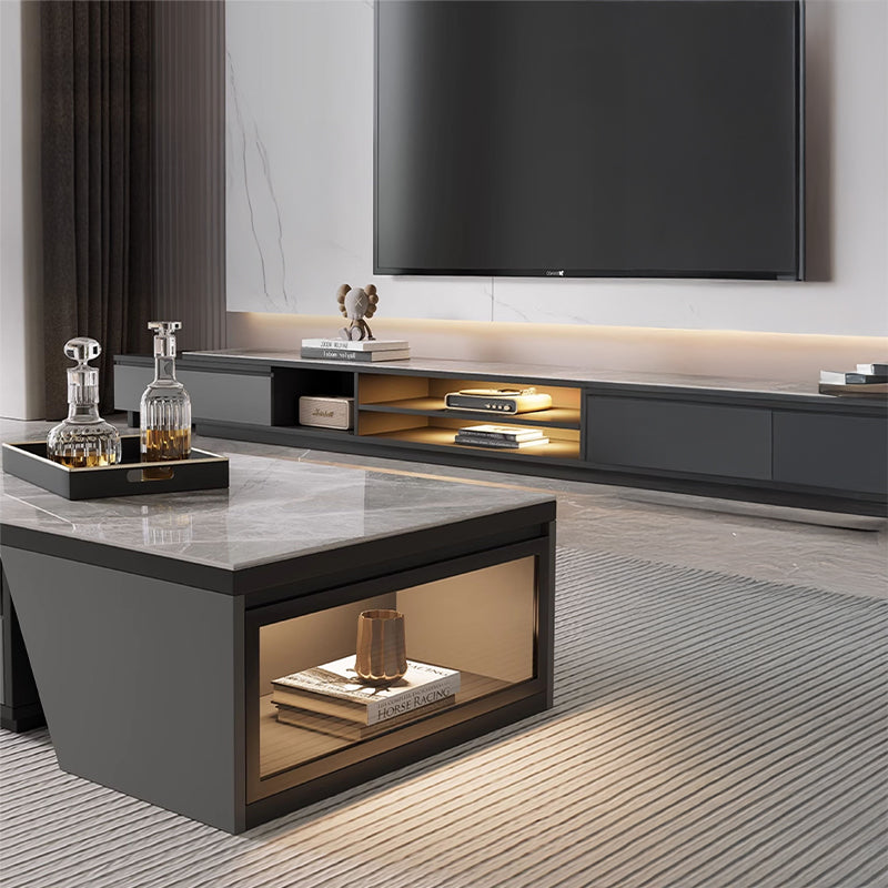 キャビネット部分にLEDライトを内蔵しており、夜間は柔らかな光がリビングを幻想的に演出します。ライトの点灯により、テーブル周りに落ち着いたムードが生まれ、リラックスタイムをより上質なものにします。
