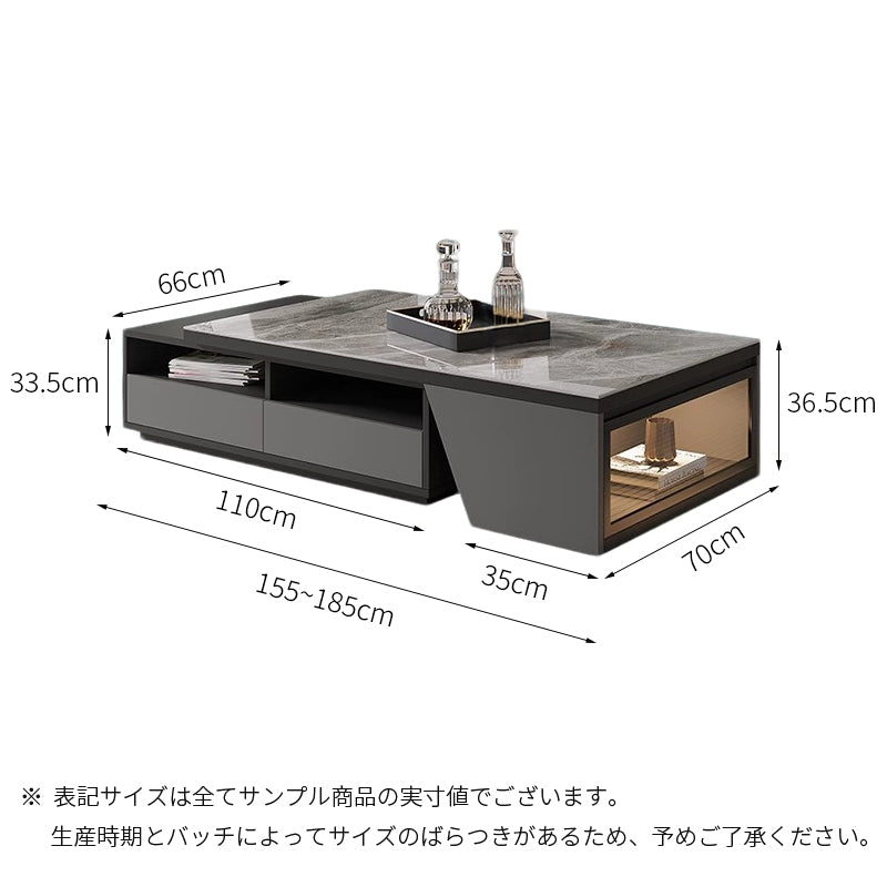 [天板]高級シントレードストーン(セラミックの一種) [本体枠]プリント合板 [側面]ガラス [脚部]メタル