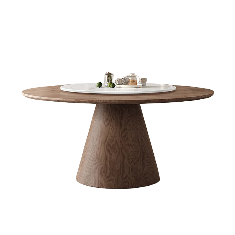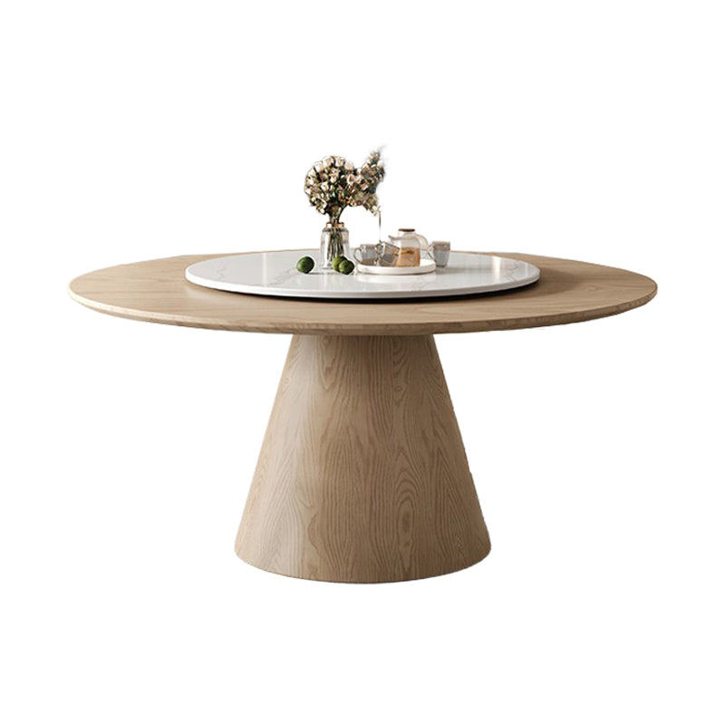 円形の天板と木製ベースが美しく調和し、空間に洗練された雰囲気をもたらします。
