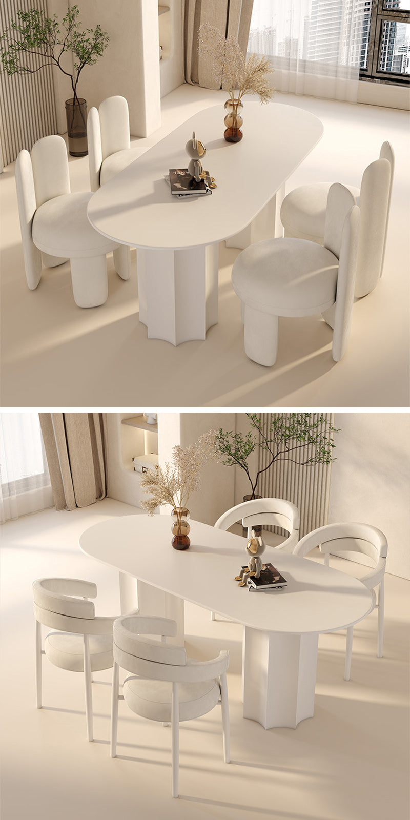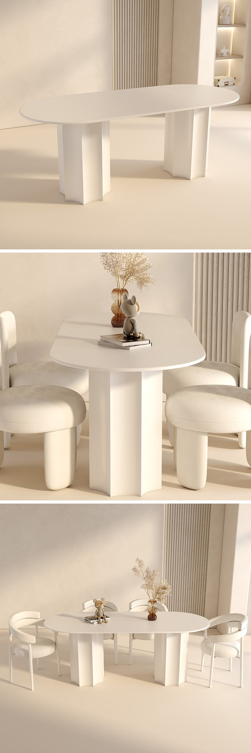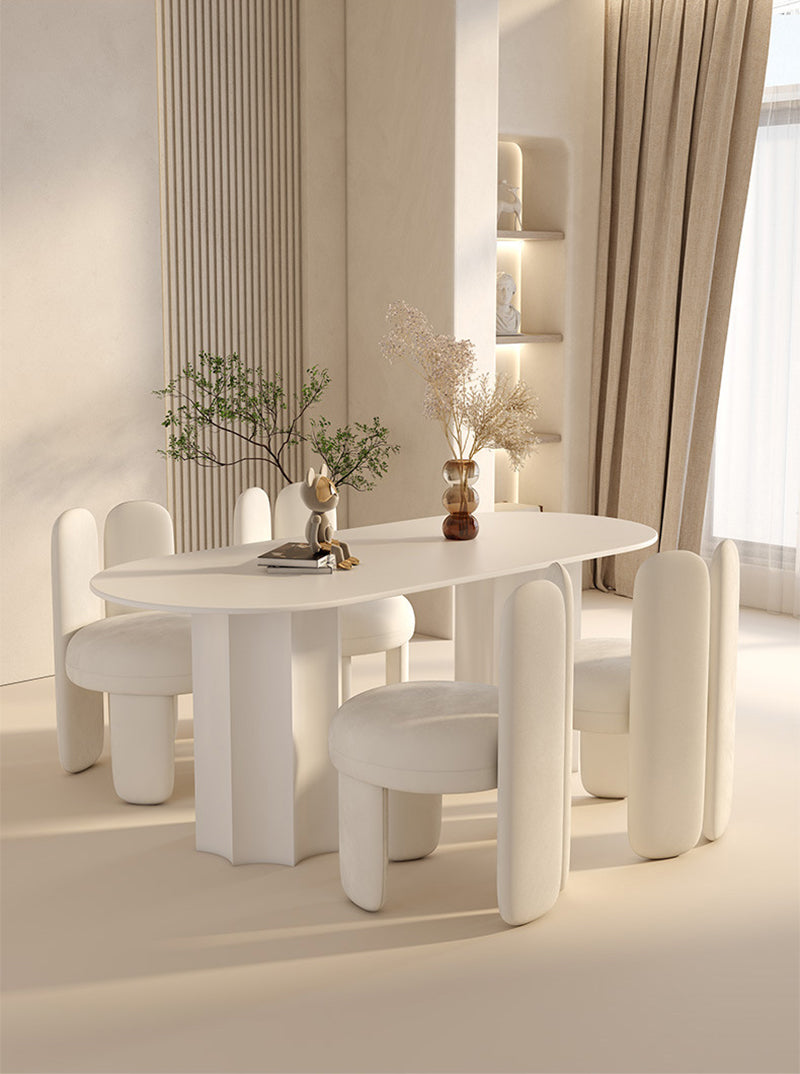 楕円形のテーブルは、流れるような自然なフォルムが特徴で、柔らかな曲線が空間に温かみを添えます。