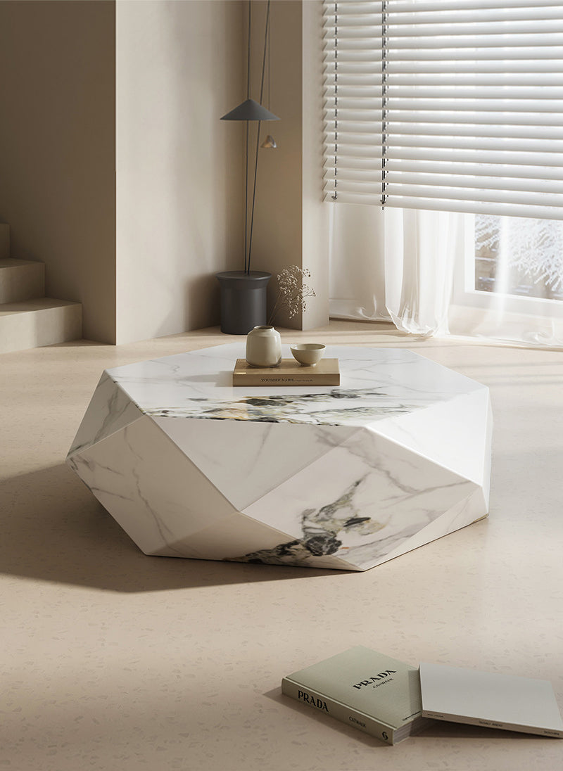 新商品ローテーブルはイタリア風のデザインで、ダイヤモンド形状が個性的な特徴です。