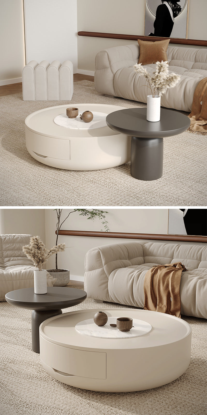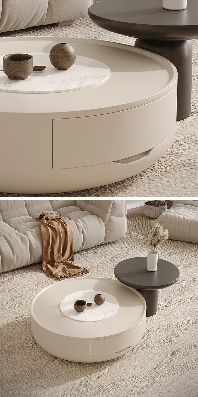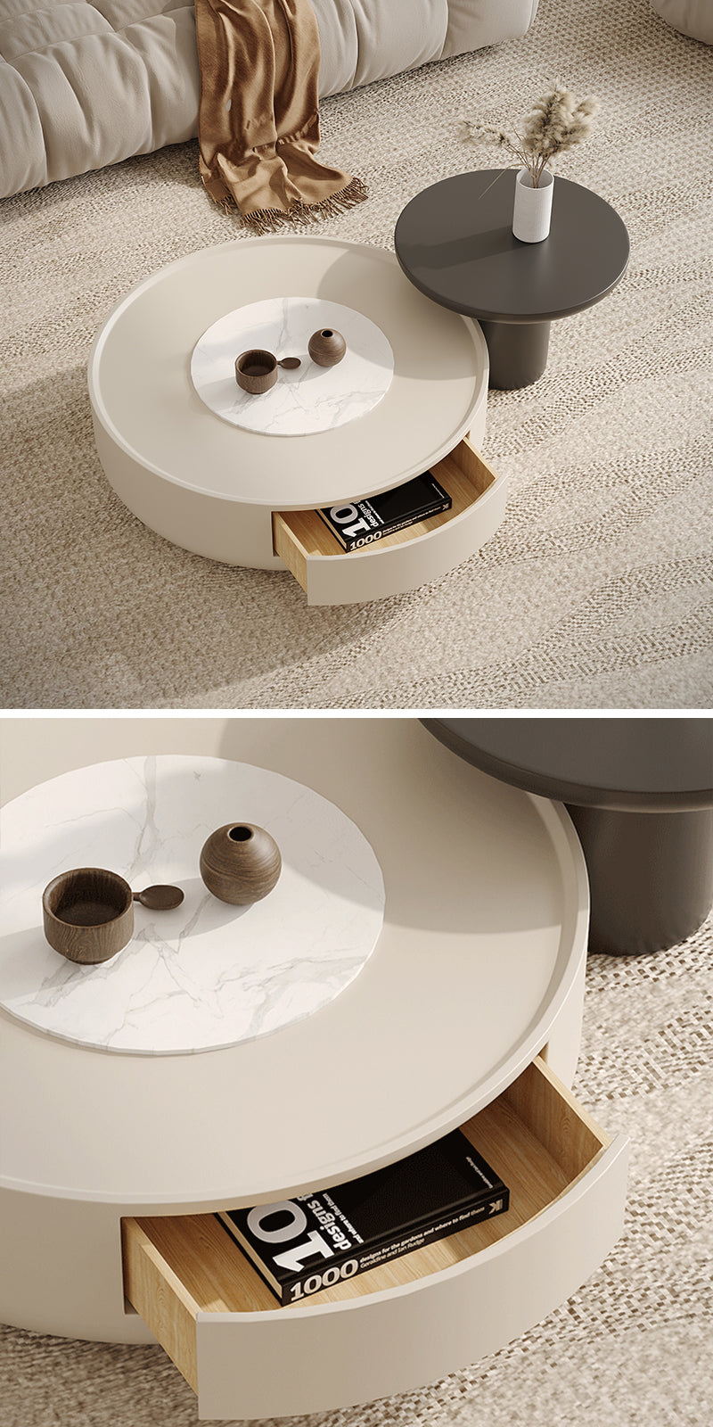 ローテーブルの外側は高めデザインになっており、物が転落しにくい工夫が施されています。