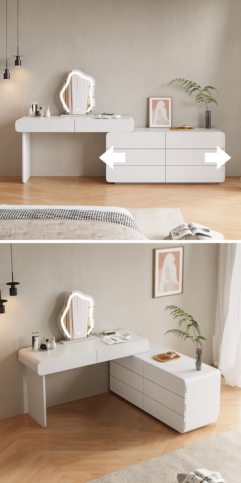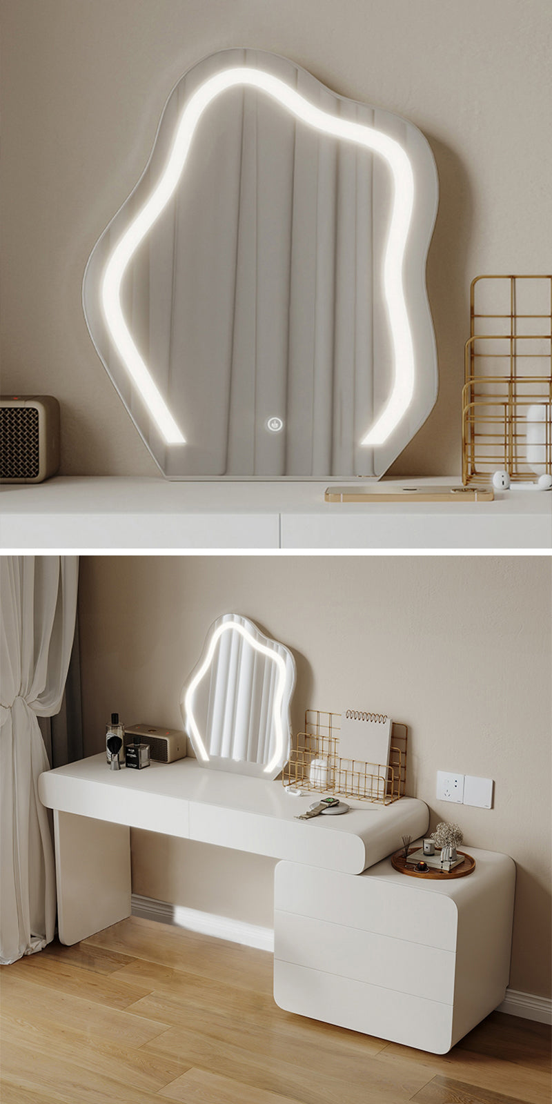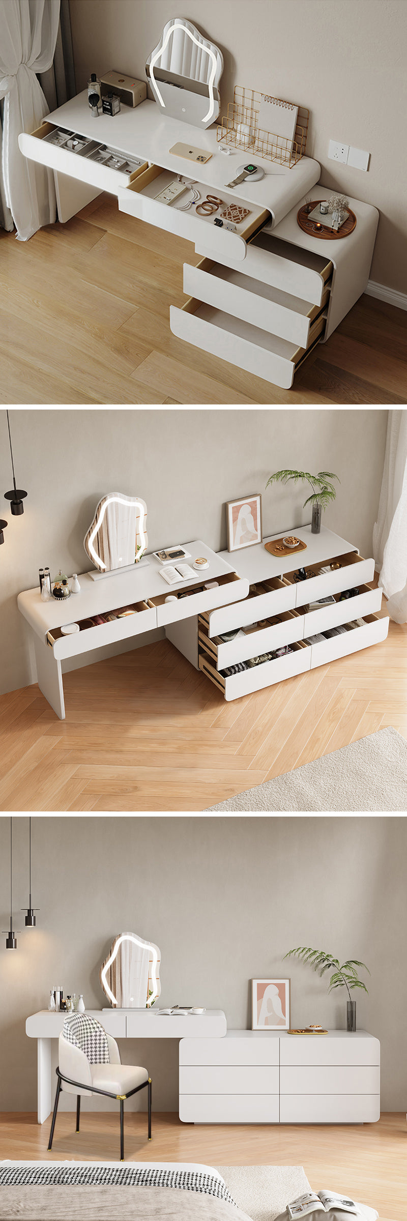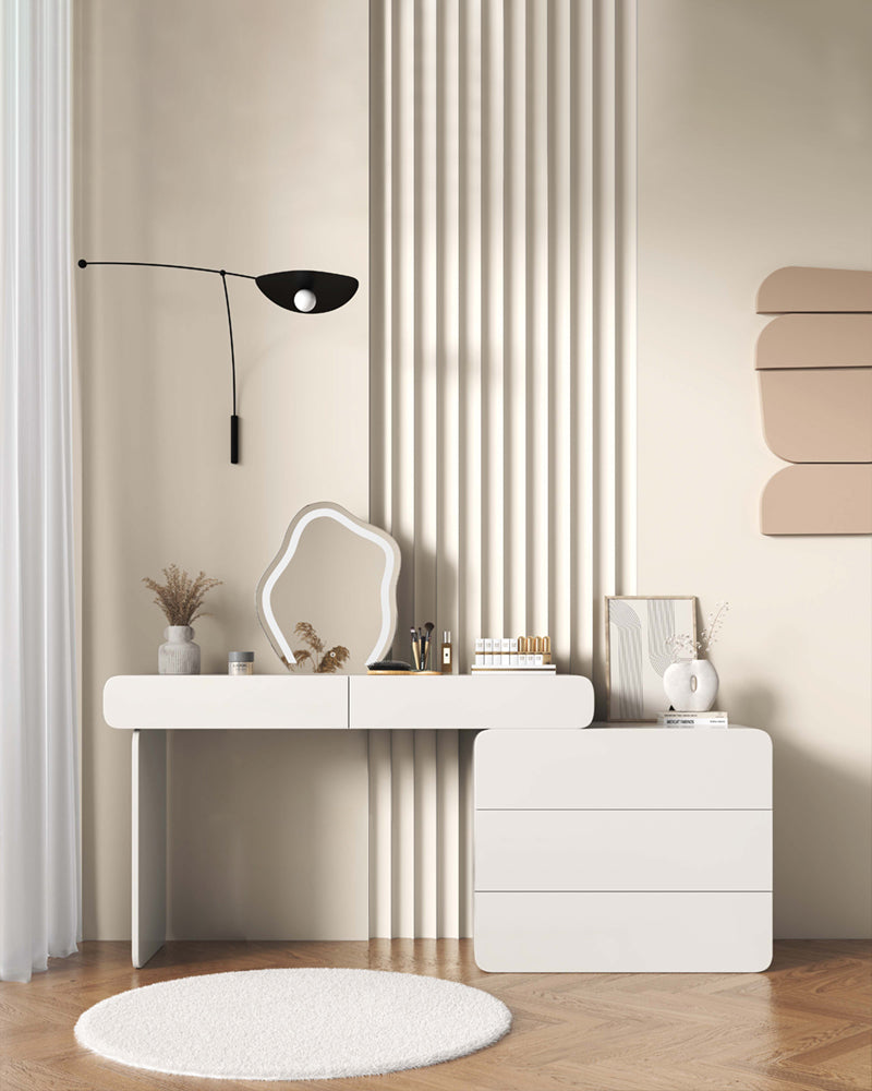 ドレッサーの造形は流れるような曲線で、細部まで完璧な仕上げが施されています。