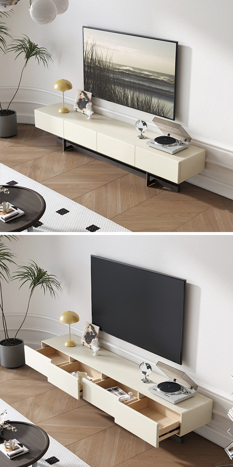目を引く個性的なテレビ台は一度見たら忘れられない魅力を持っています。
