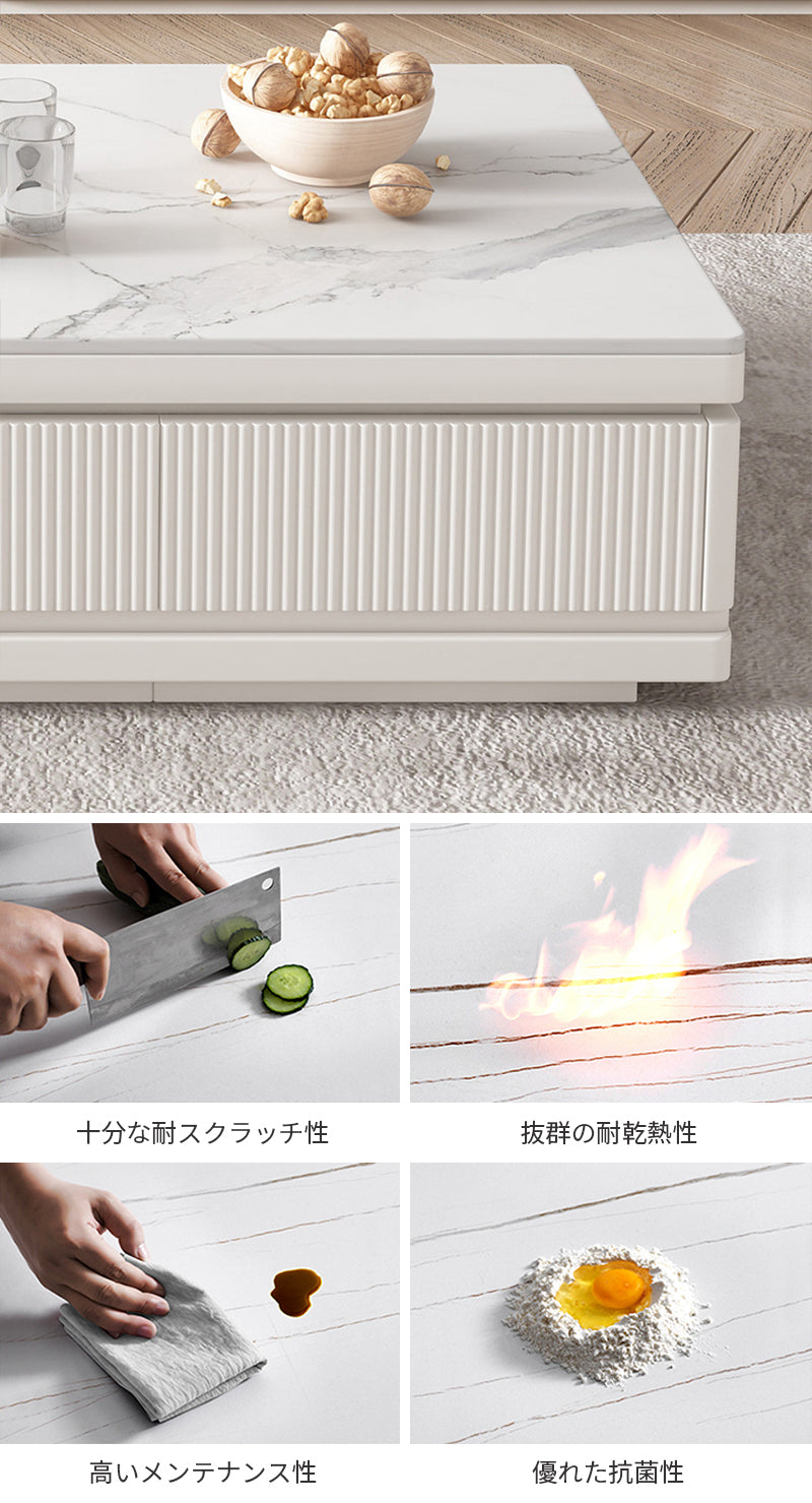 これらの特徴により、高級シントレードストーンの天板を備えたローテーブルは、デザイン性と機能性が融合したスタイリッシュな家具です。