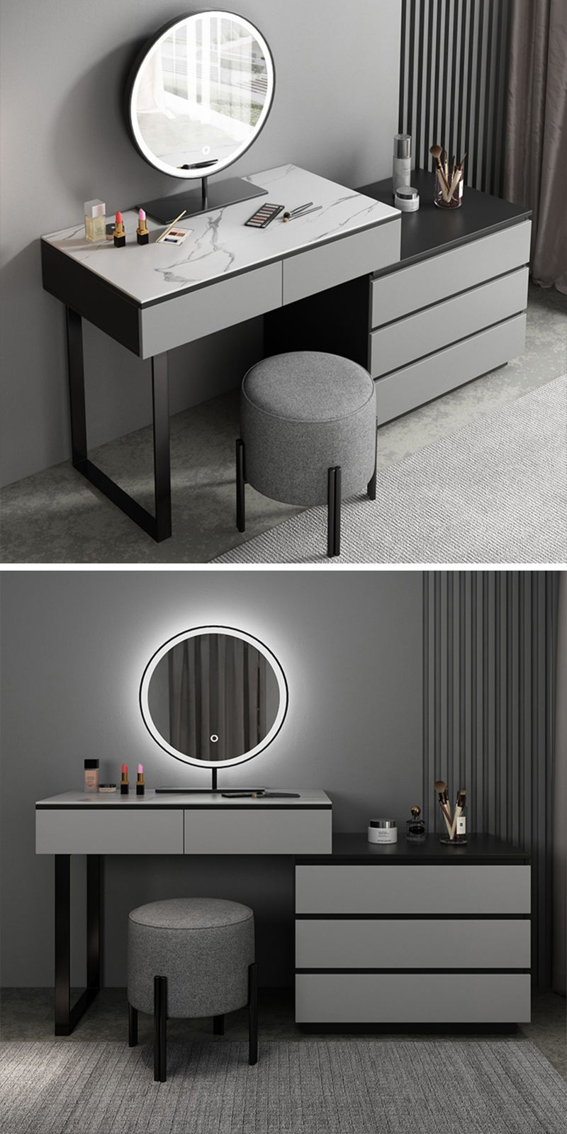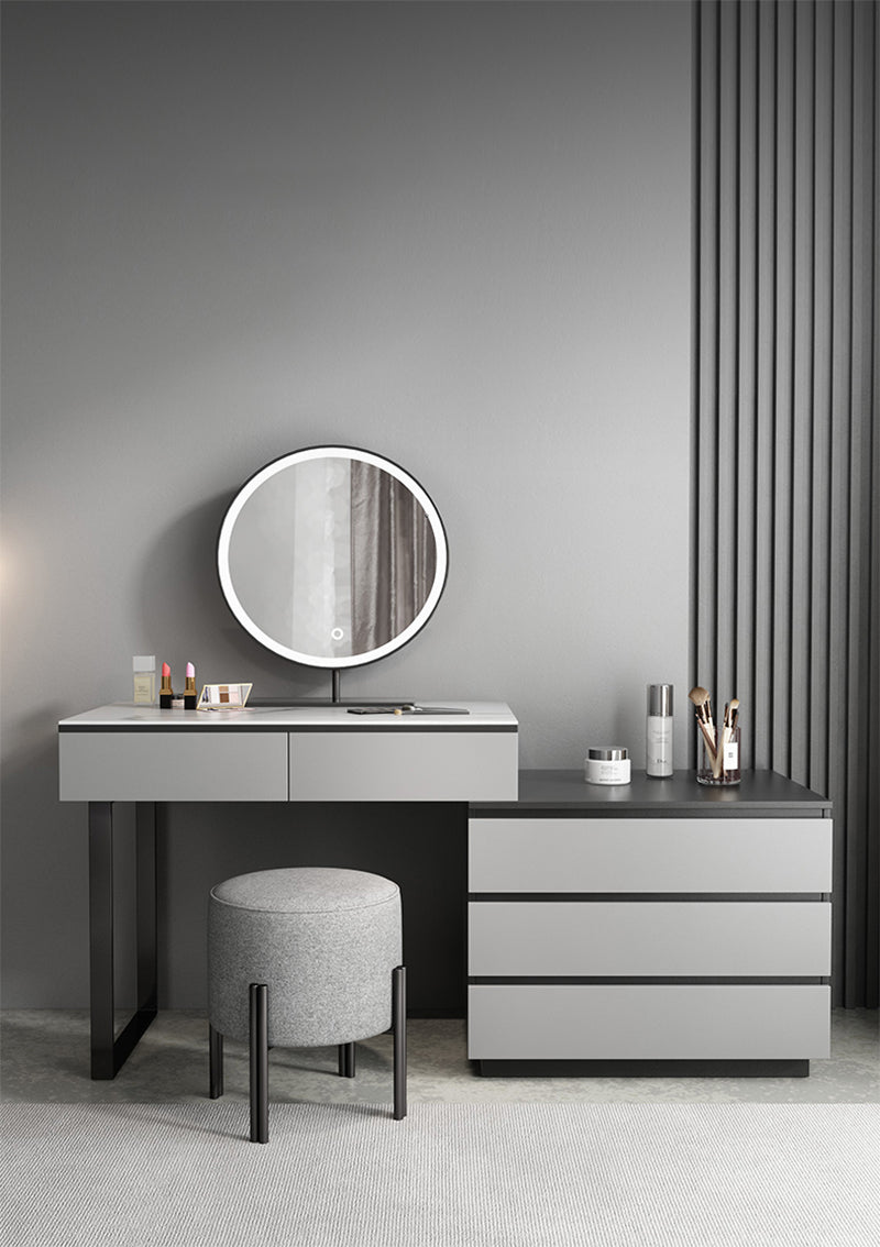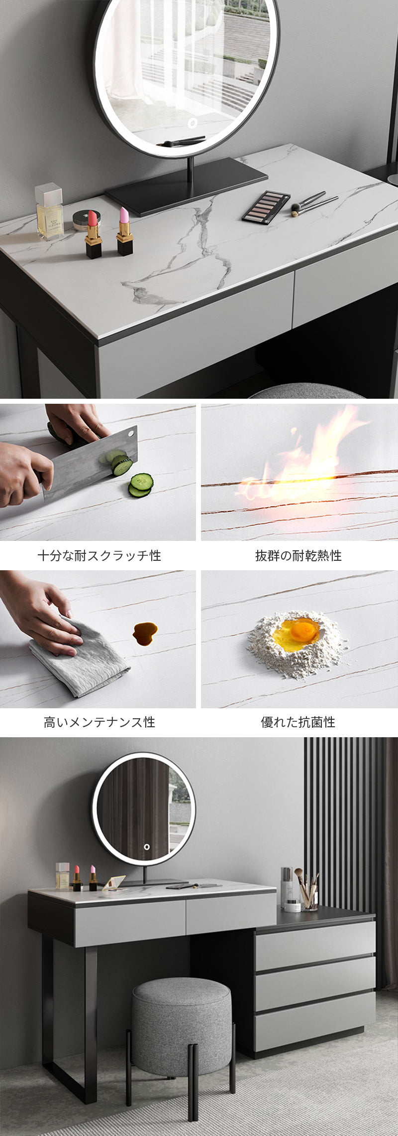 LEDミラーを取り付けることで、メイクやスキンケアの時間が楽しみになるドレッサーとして使用できます。一方で、LEDミラーを外すことでワークデスクとしても活用可能。様々なシーンに適した使い方が可能です。