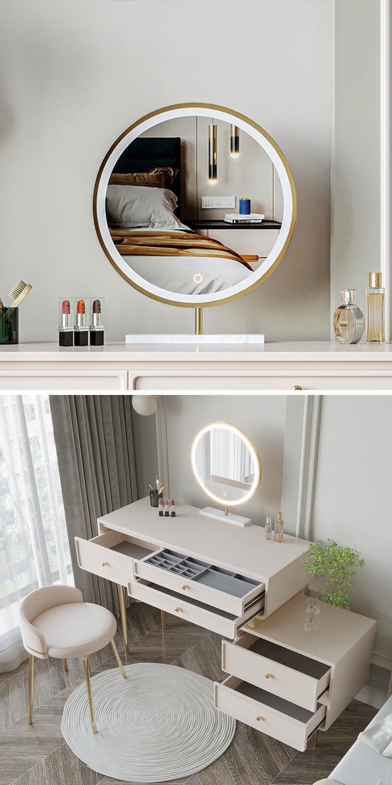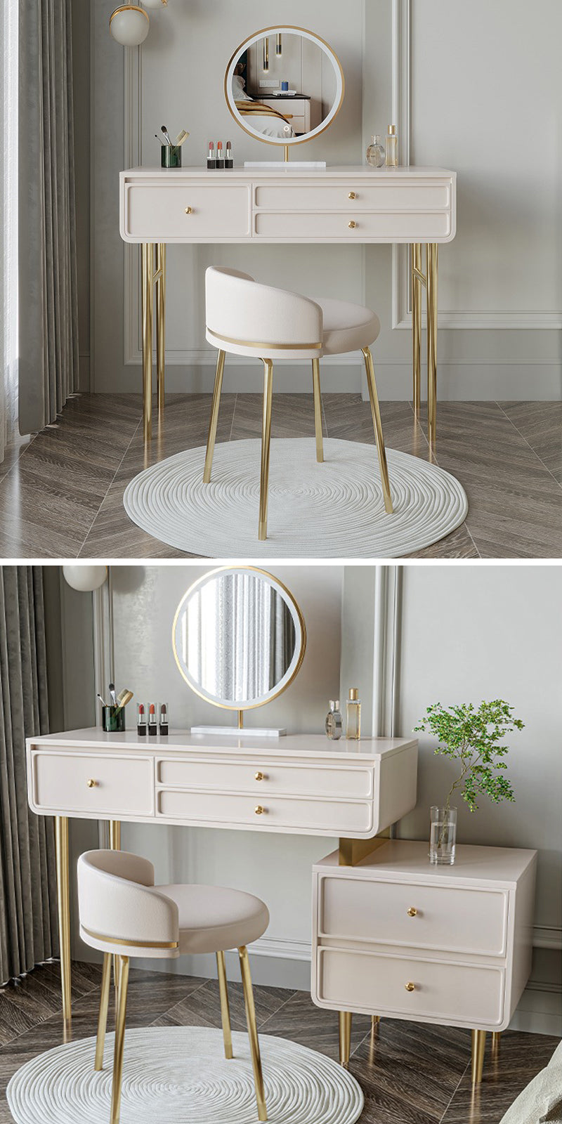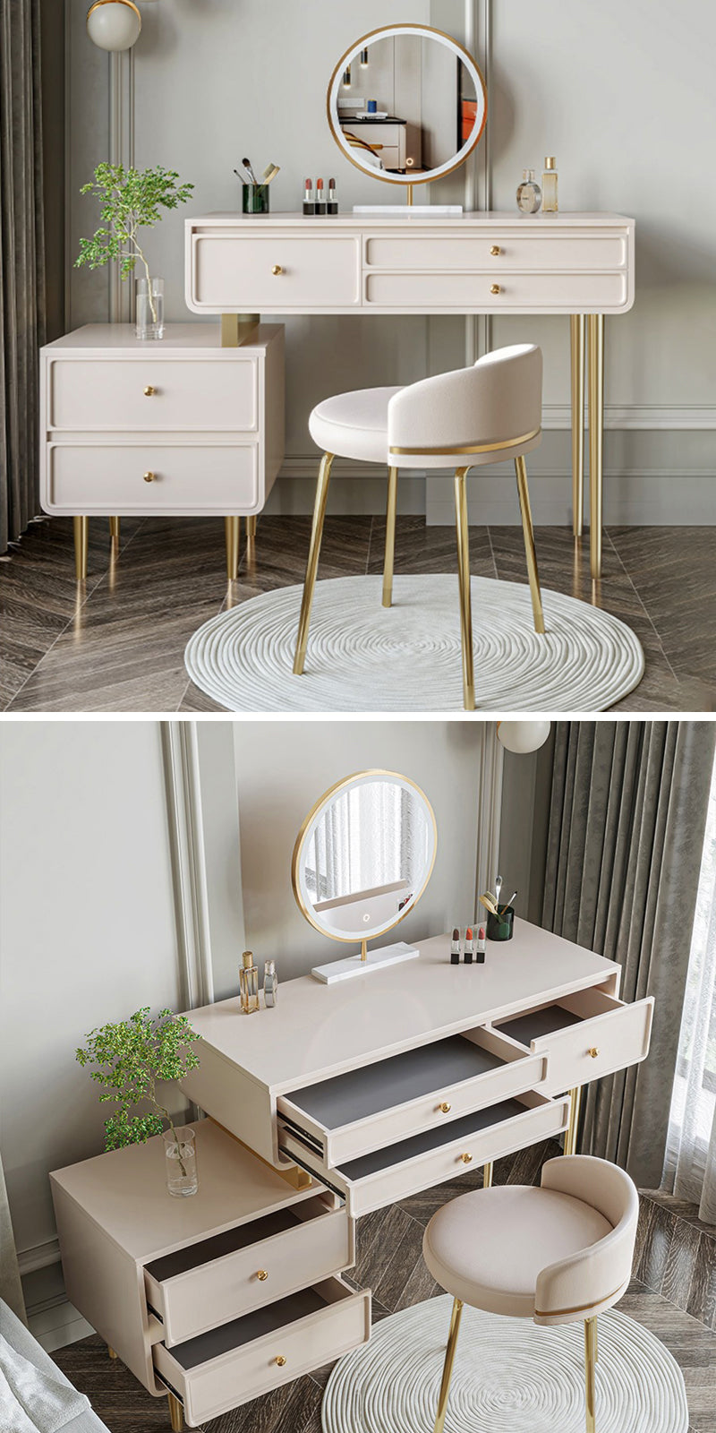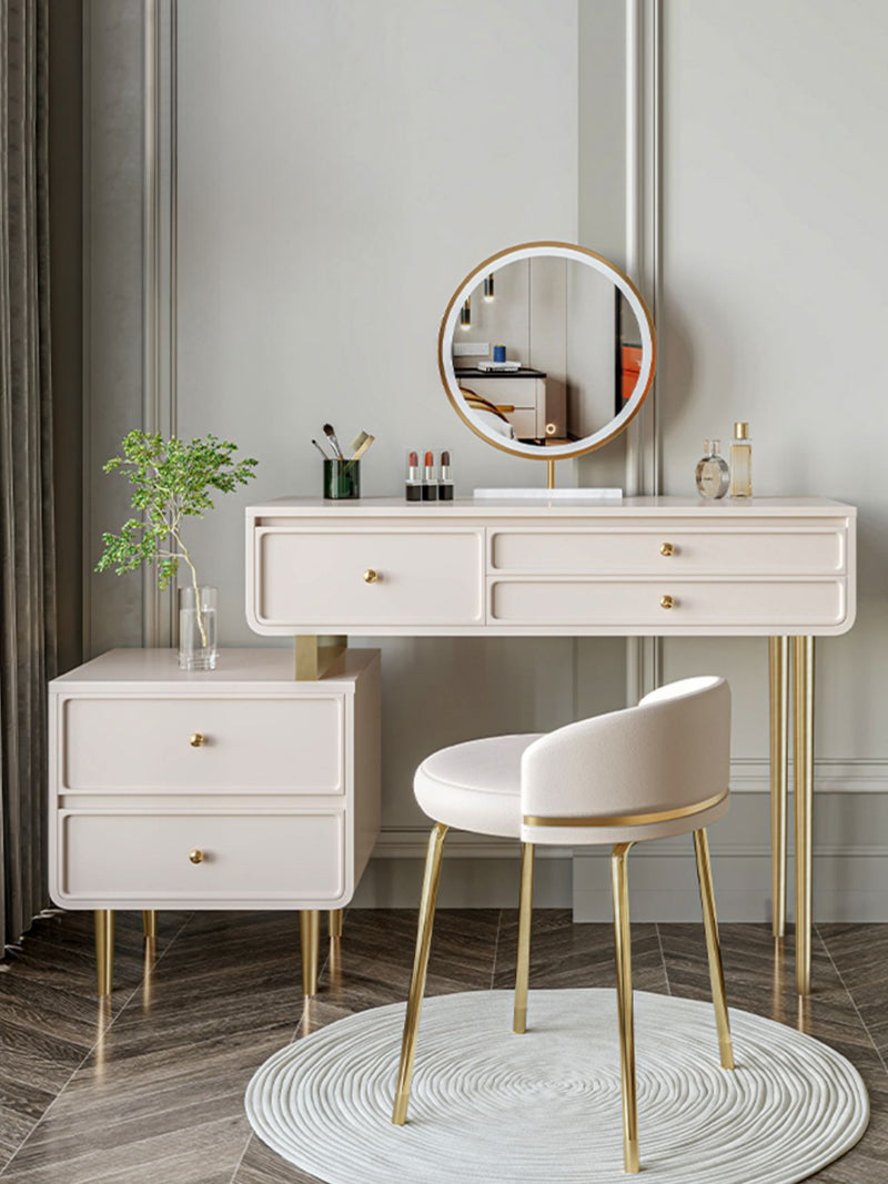このドレッサーは、エレガントな雰囲気と心地よい癒しを提供し、お手入れの簡単さや安全性も兼ね備えています。