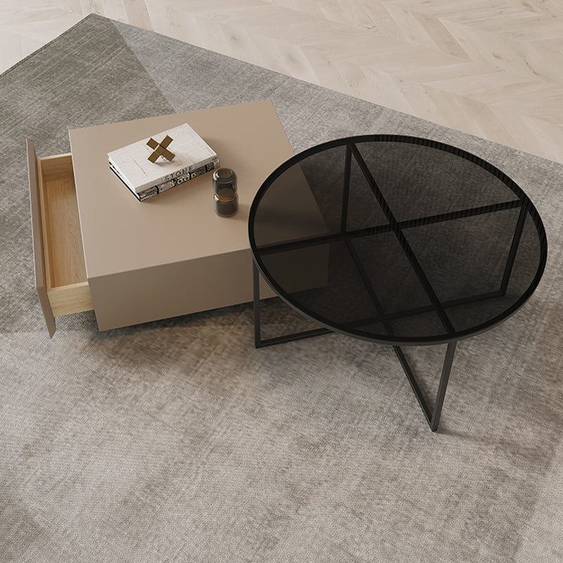 円型の天板と正方形の天板を組み合わせてすっきりとした意匠に仕上げました。