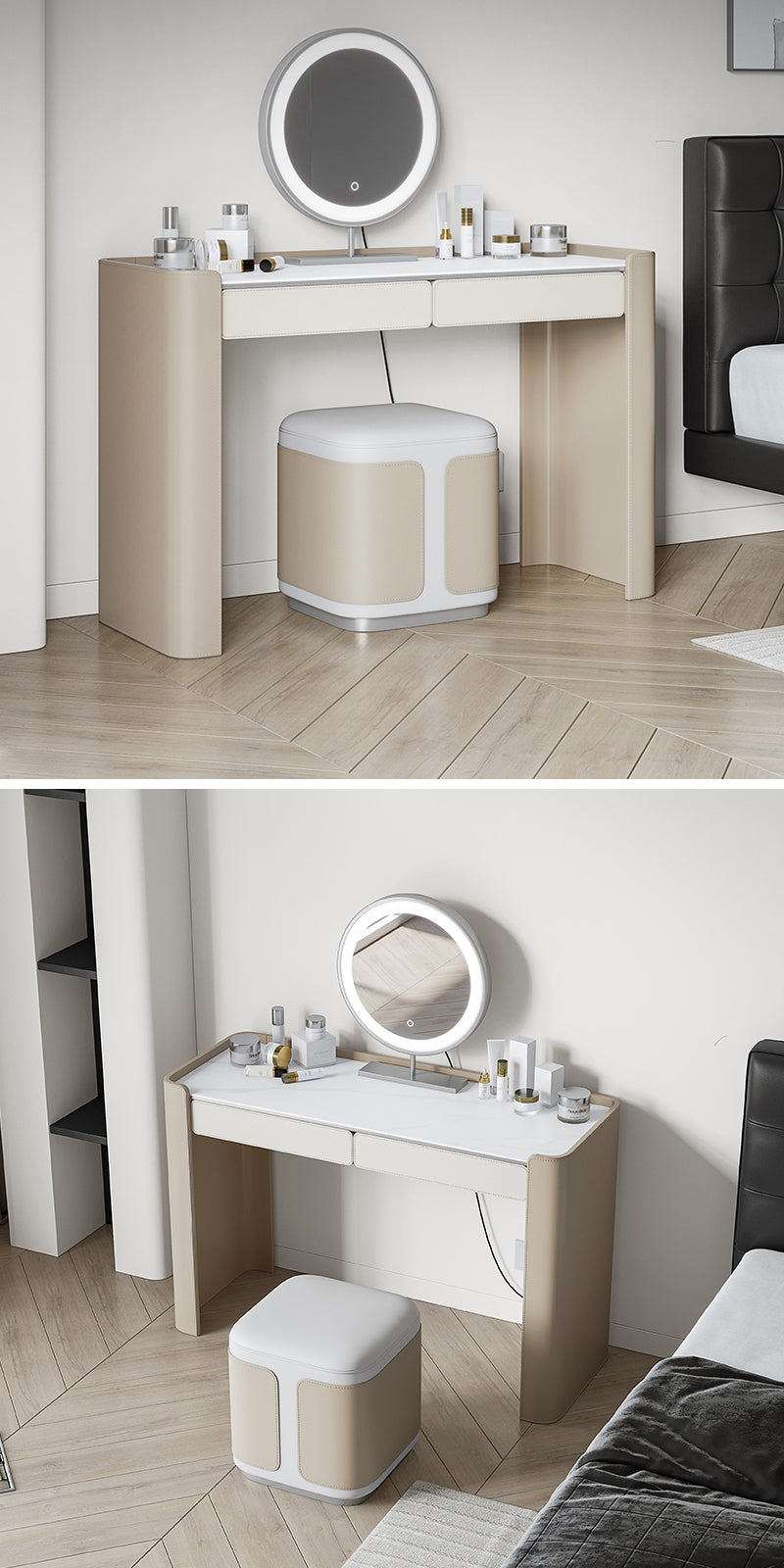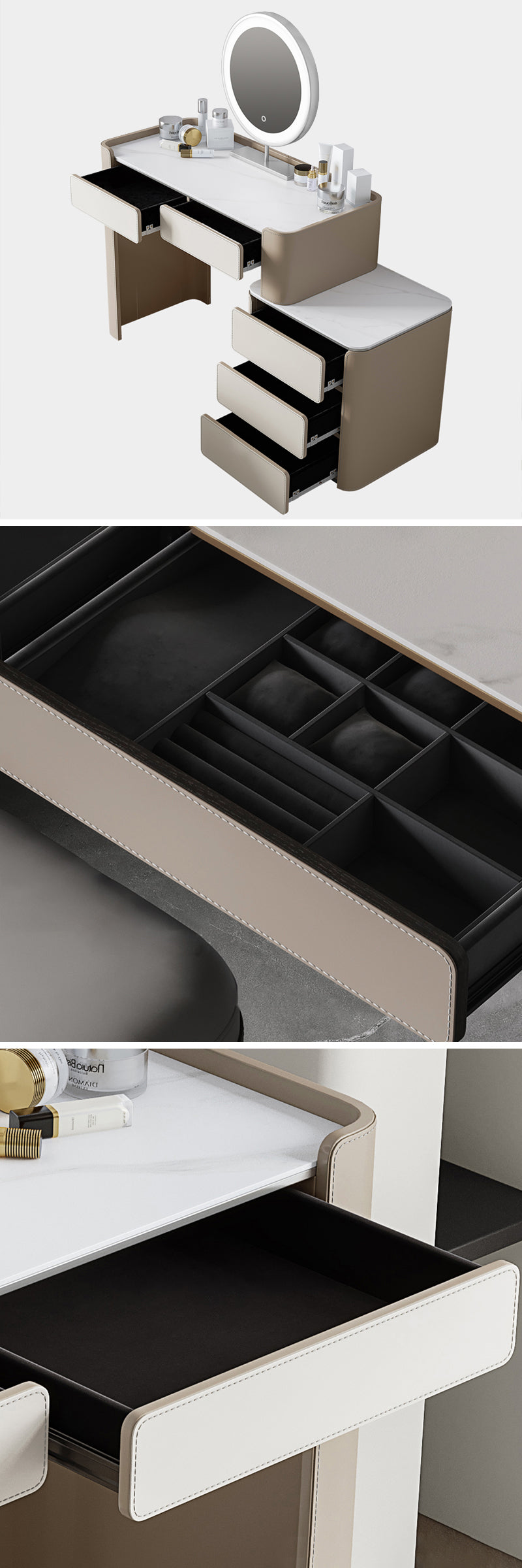 このドレッサーのデスクトップと5つの引き出しには、化粧品、ジュエリー、その他の装飾品を整理するのに十分な収納スペースが備わっています。
