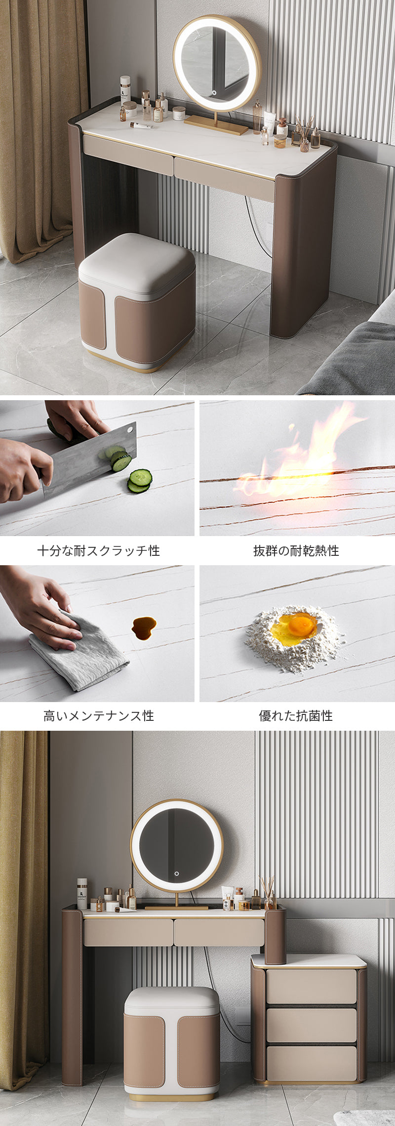 このように、モダンで洗練されたスタイルと実用性を兼ね備えたドレッサーは、お部屋に上質な雰囲気をもたらし、豊かな暮らしを演出します。