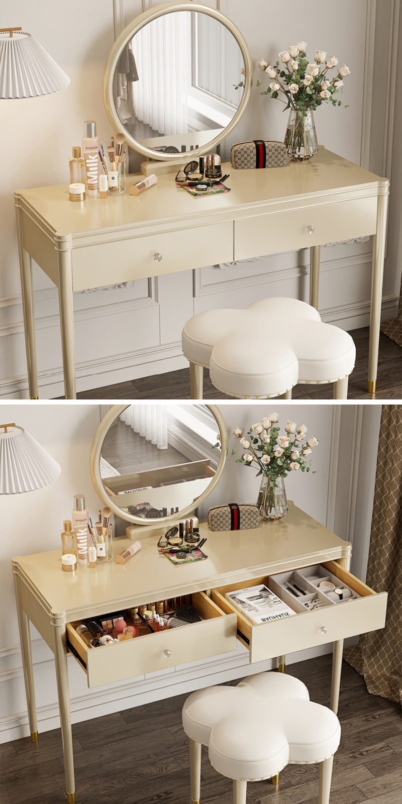 装飾されたベッドルームやリビングルームで見栄えがし、クリーム風の化粧台に優雅さを加えます。