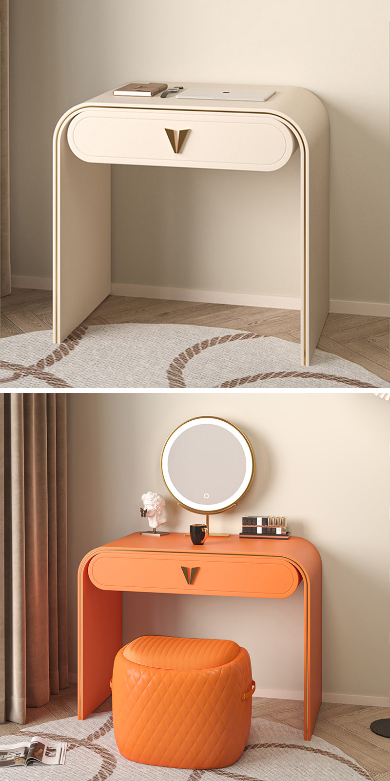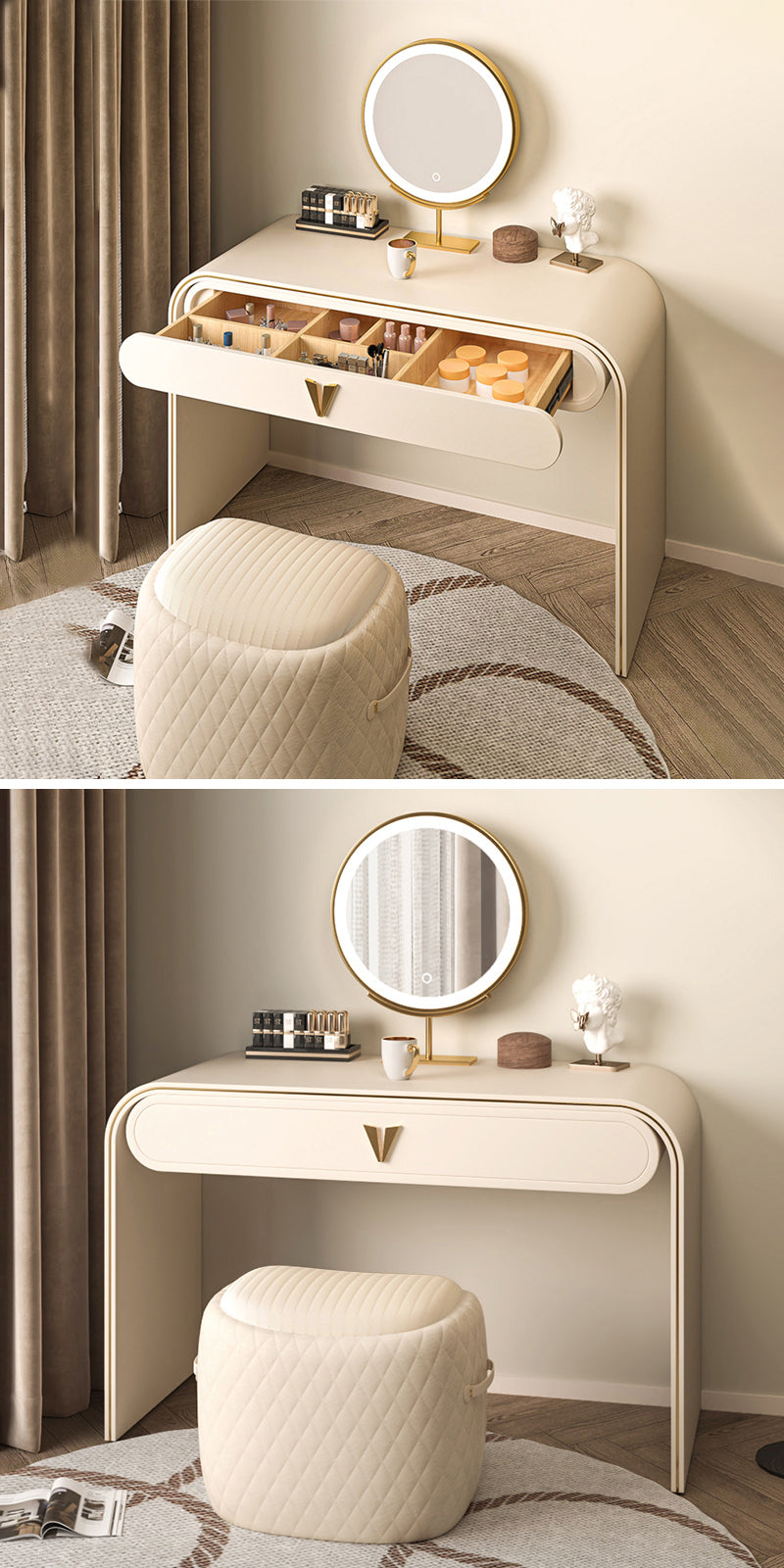 美しい曲線が特徴のコンパクトなドレッサーセットは、部屋にエレガントさと実用性を提供します。