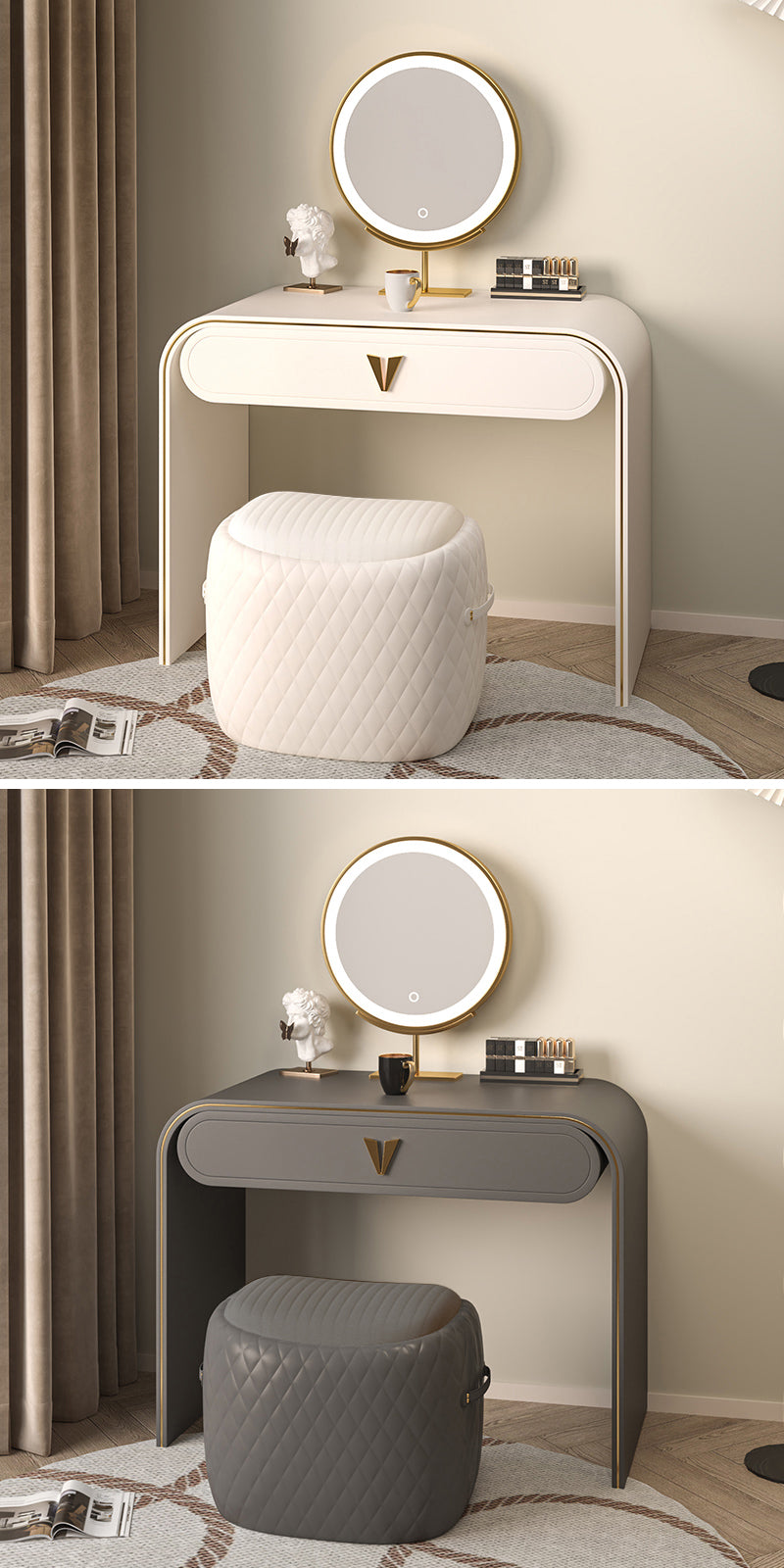 シリコンスキンカバー、サイドキャビネット、鏡、そしてスツールが含まれており、寝室やリビングルームに最適です。