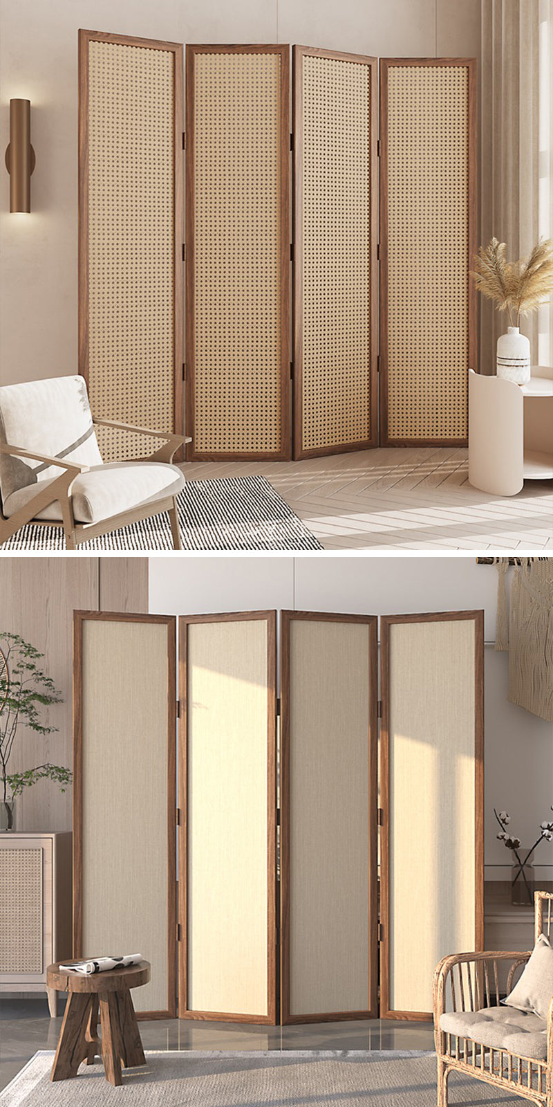 ラタンと綿麻のパネルは、通気性が良く、適度な目隠し効果を発揮します。天然素材のため、健康に配慮した安全性も確保されています。