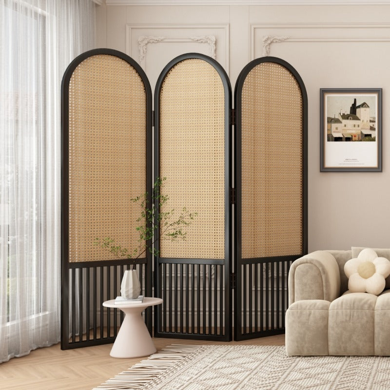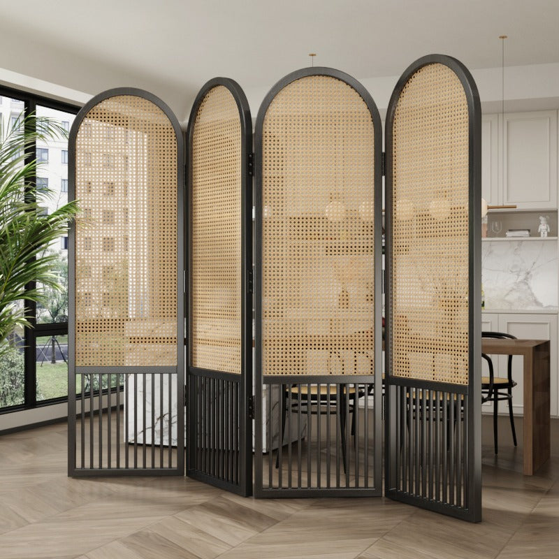 ラタンの編み込み部分は軽量でありながらしっかりとした強度を持ち、通気性が良く、視線を遮りながらも圧迫感を感じさせません。
