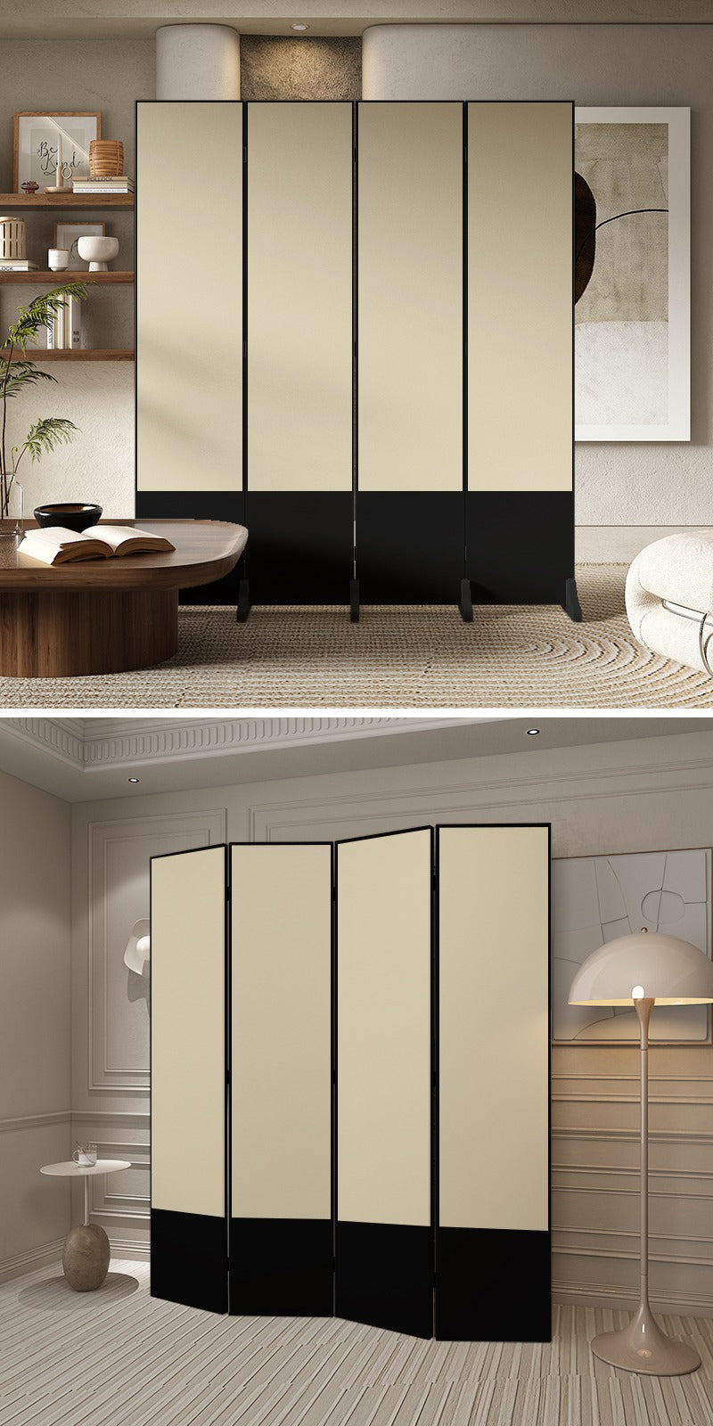 フレームには高品質な集成材を使用し、張りキャンバスのパネルがエレガントな印象を与えるパーテーションです。