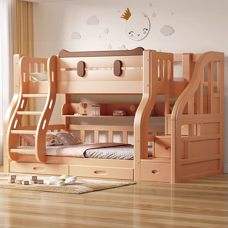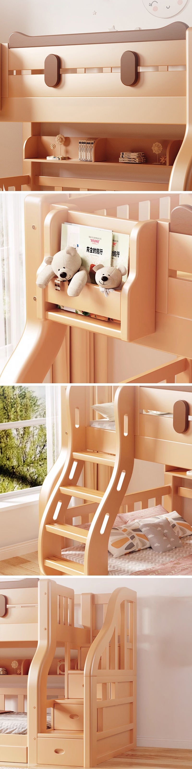 このエレガントな北欧風二段ベッドは、温かみのあるナチュラルな色合いとホワイトの組み合わせが魅力的なデザインです。