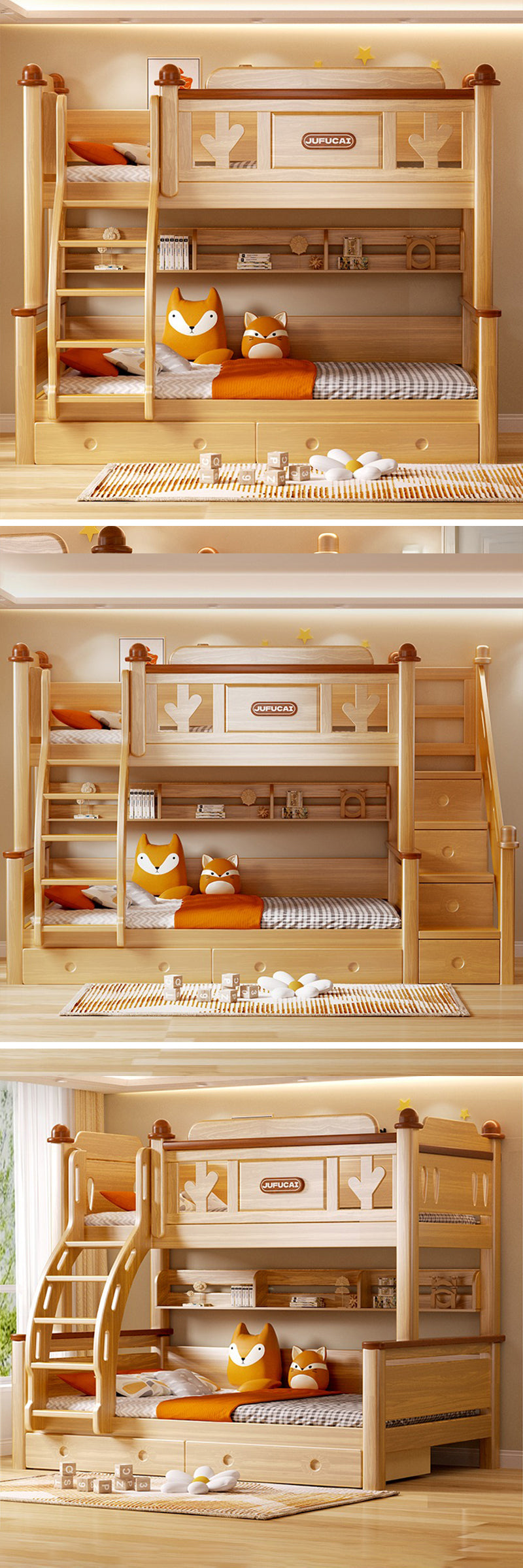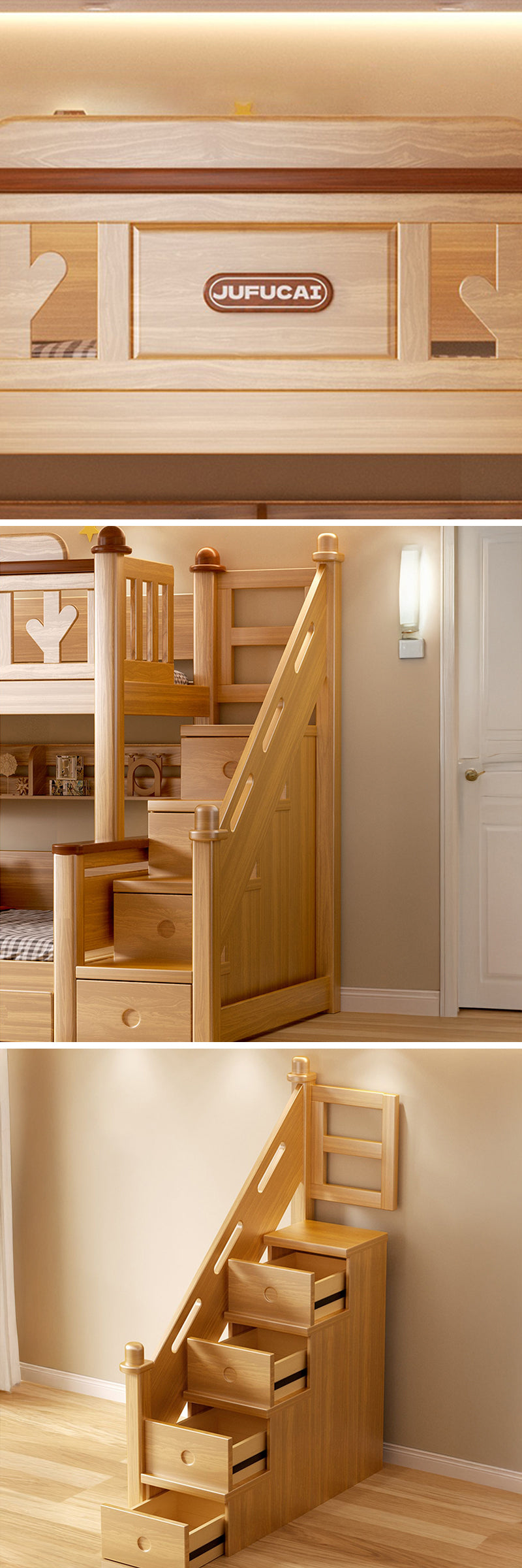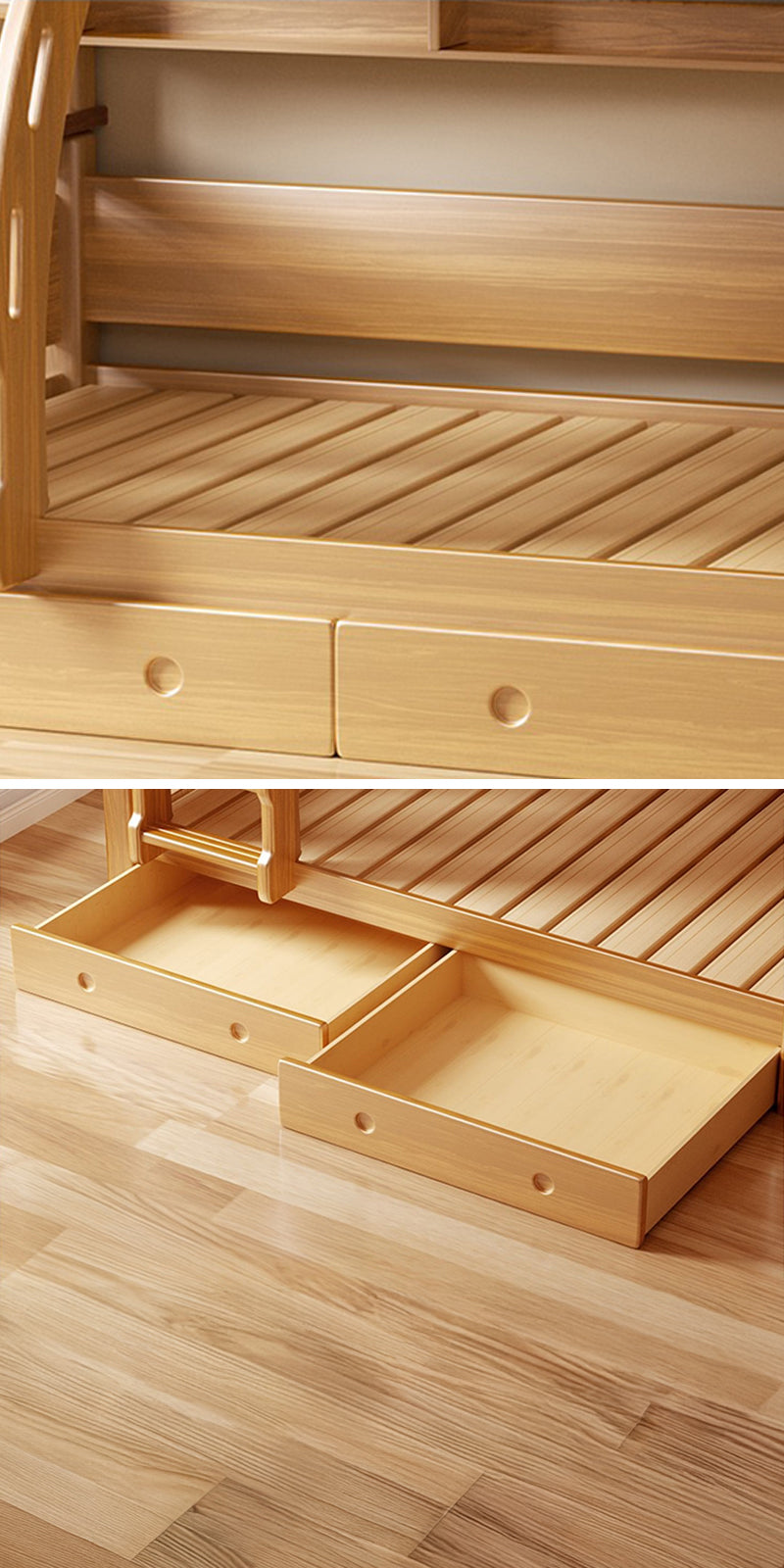 ベッドのフレームは頑丈で、子供たちが安心して眠れるように設計されています。階段タンスは収納力があり、衣類やおもちゃを整理整頓するのに便利です。部屋をスッキリと保ちやすく、機能的な空間を実現します。