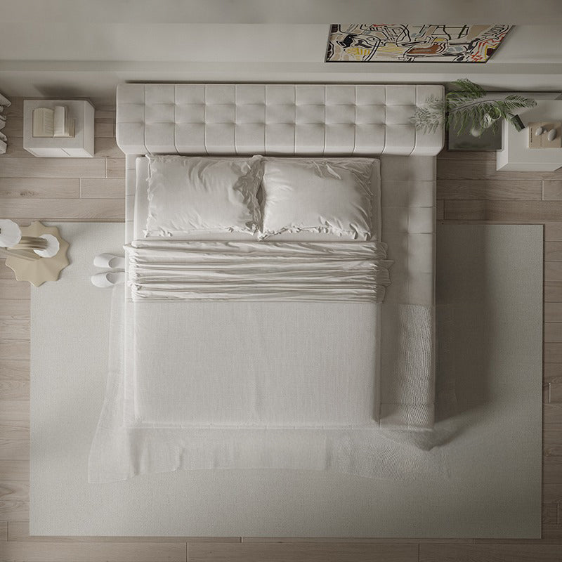 このベッドは、シンプルでありながら洗練されたデザインが特徴です。全体を白で統一し、どんなインテリアにも自然に溶け込むよう設計されています。