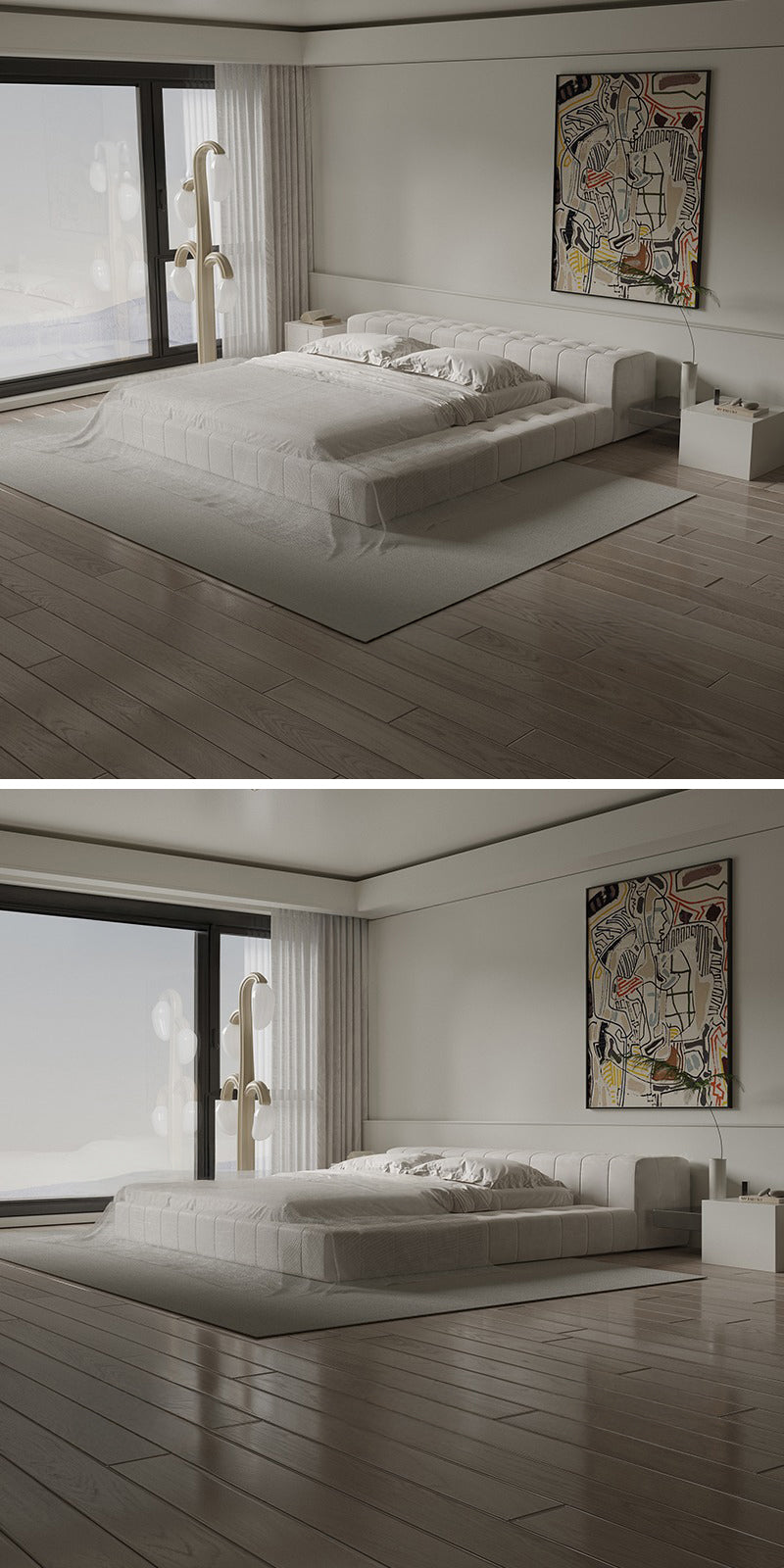 このベッドは、モダンでミニマリストな寝室に最適です。都市型アパートやモダンな住宅、さらにはホテルのスイートルームにもふさわしいデザインです。