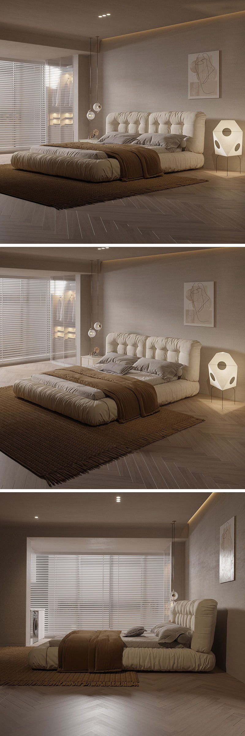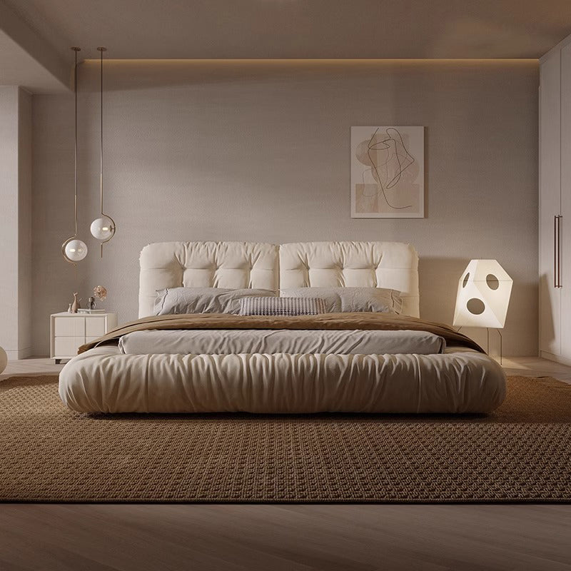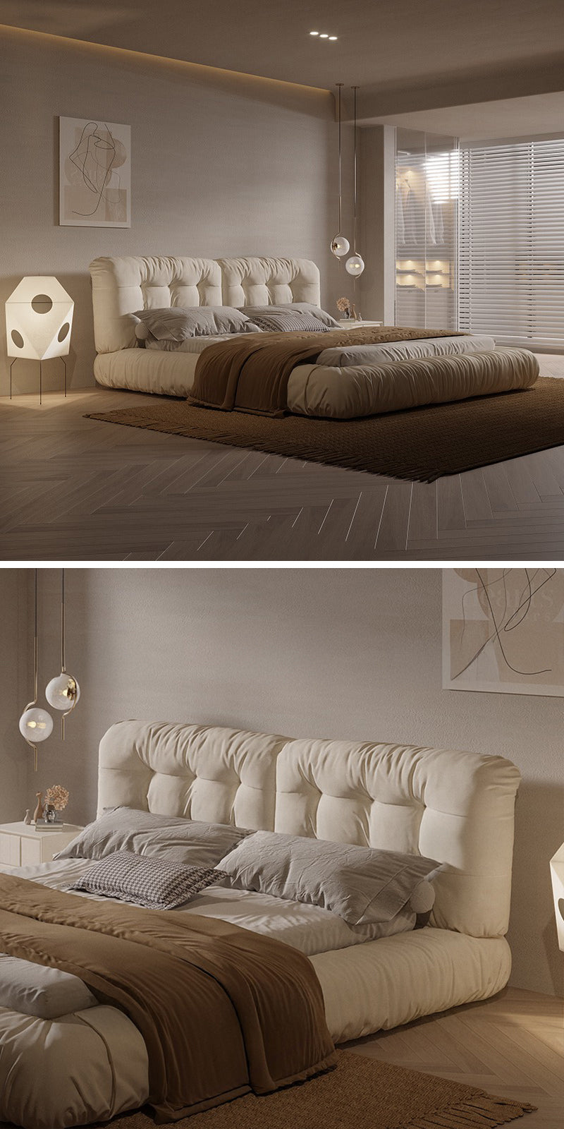 ふっくらとしたクッションが特徴のヘッドボードとフットボードは、見た目の美しさだけでなく、快適な背もたれとしての機能も兼ね備えています。
