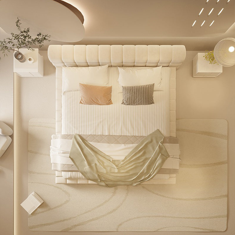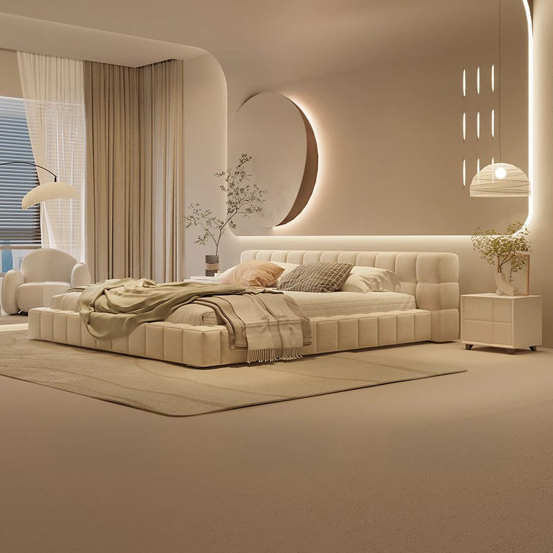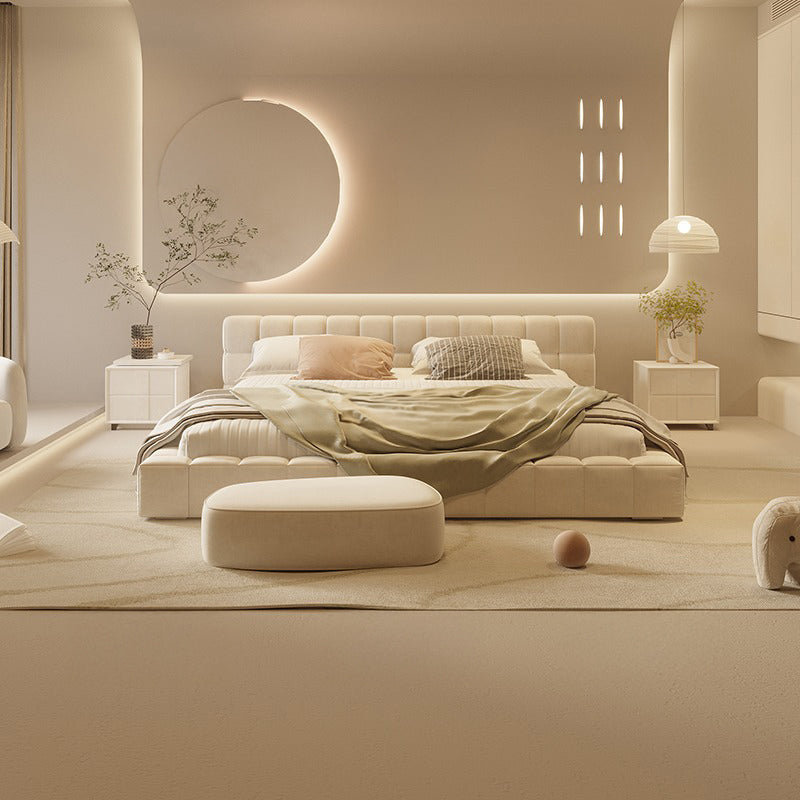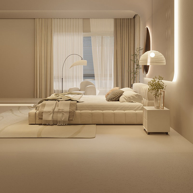 このベッドは、ミニマリストでありながらエレガントなデザインが魅力です。柔らかなベージュの色合いが、寝室全体に温かみと落ち着きをもたらします。