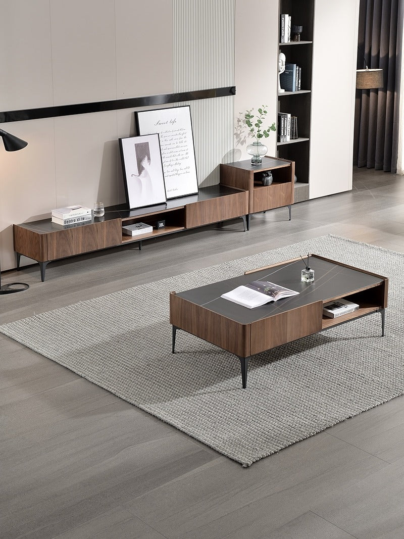 ウォールナットやグレー、ブラックのカラーバリエーションにより、どんなインテリアスタイルにもマッチする選択肢が用意されています。収納スペースもしっかり備え、見た目だけでなく機能性にも優れた一品です。