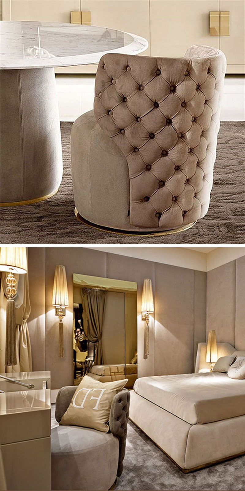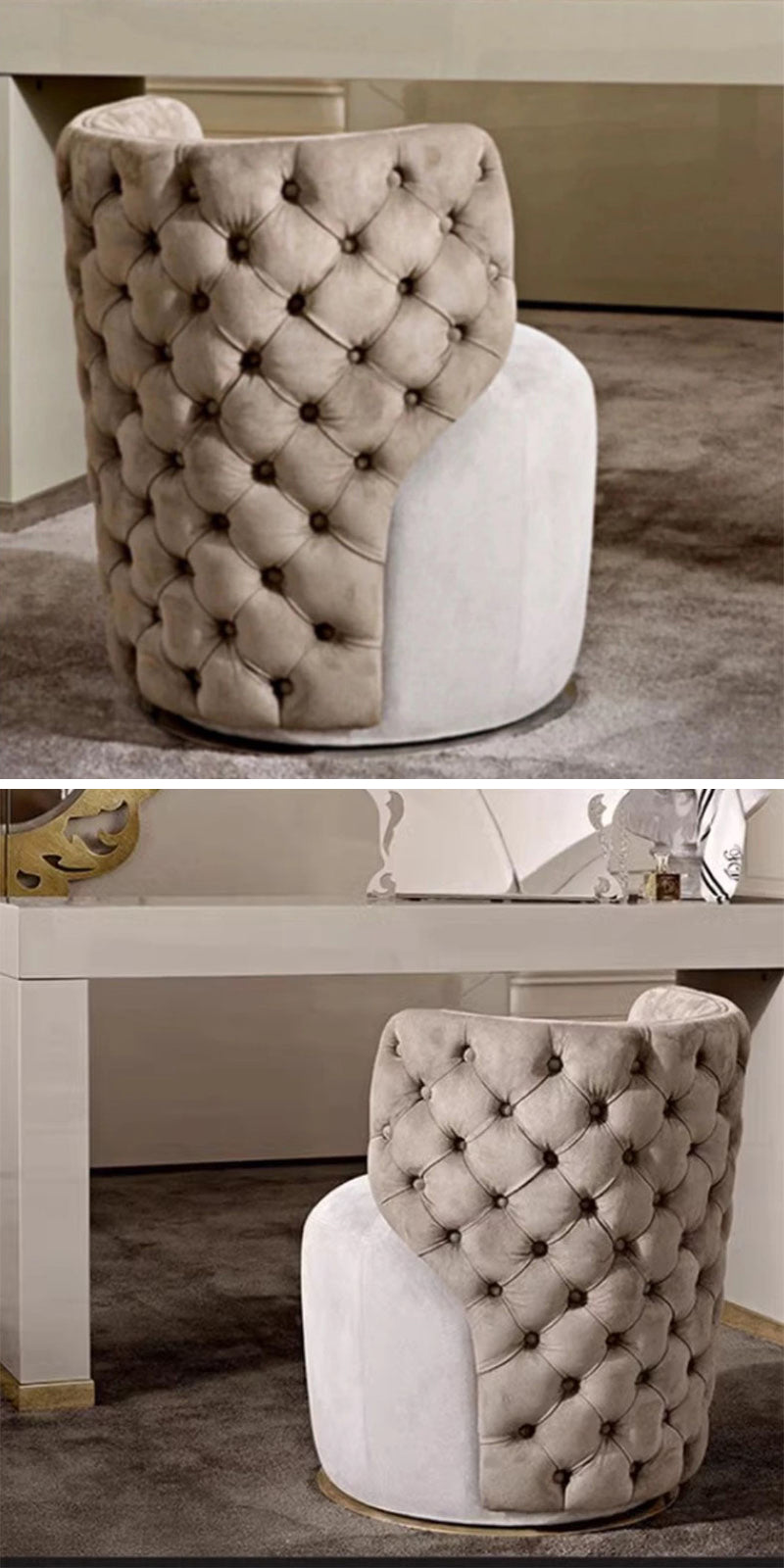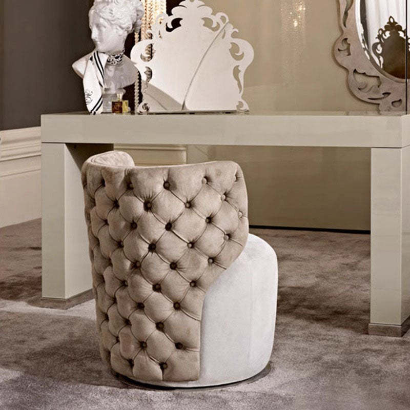 背面に施された優雅なボタン留めの装飾が洗練された印象を与え、