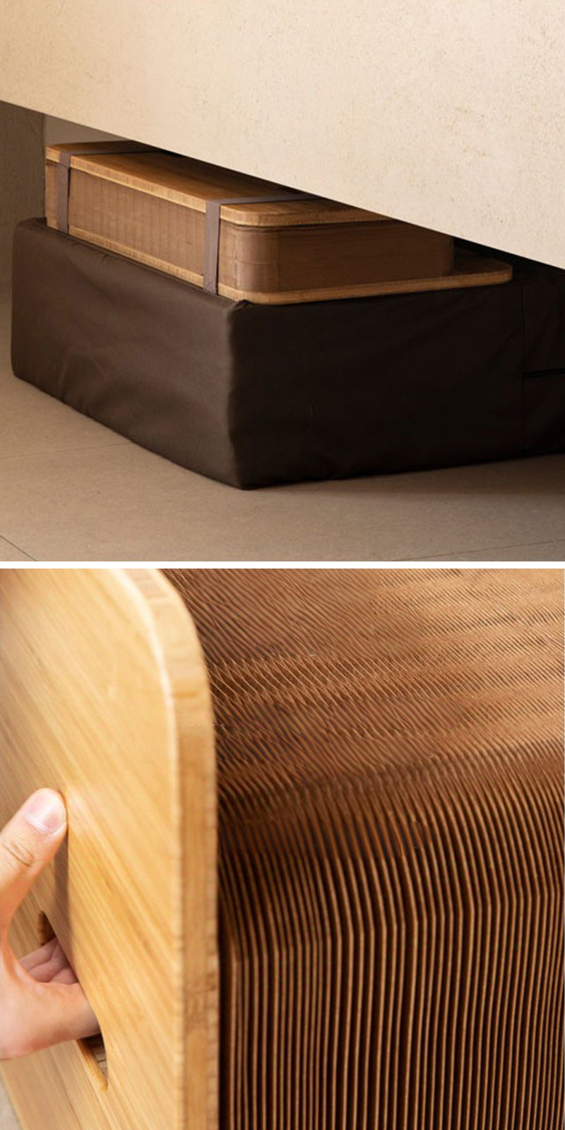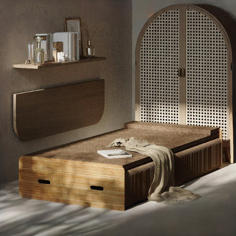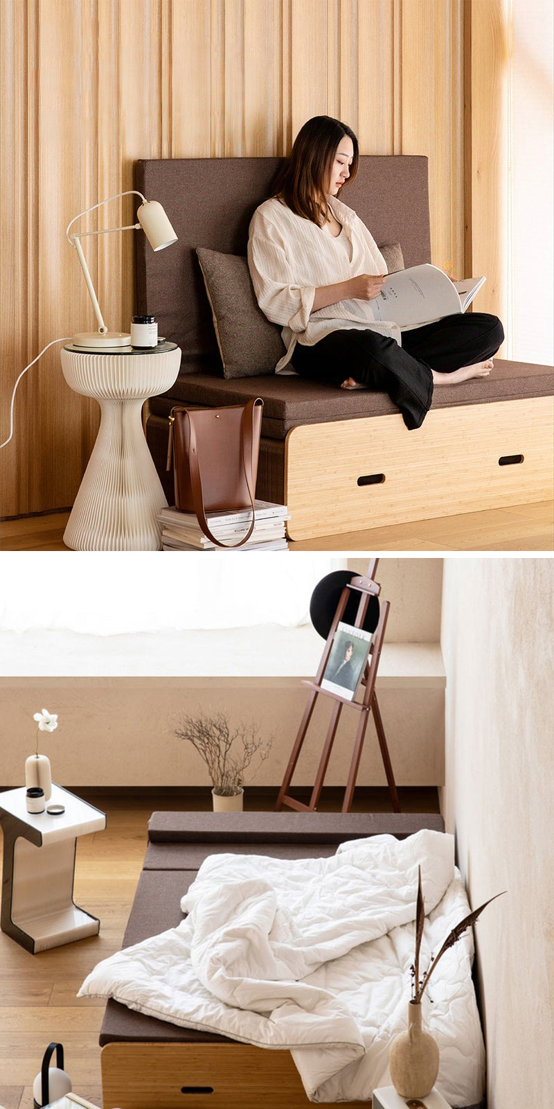 マットレスを折り畳めば、来客用の簡易ソファに早変わりし、急な来訪時の臨時ベッドとしても大活躍。