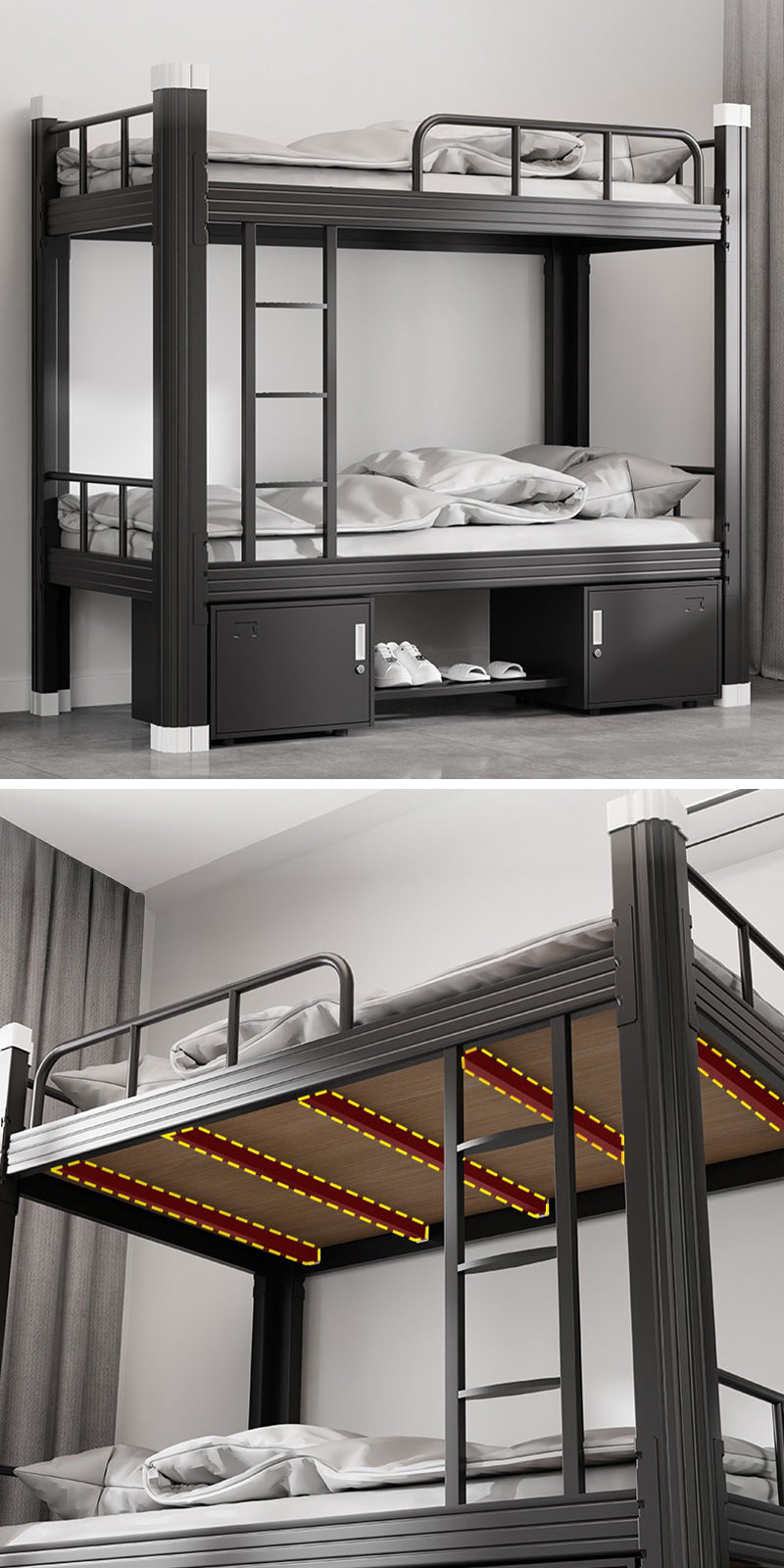 高い安全性を実現するため、上下段には厚みのある高欄(ガード)を採用。寝返りの多い方でも安心して使用でき、就寝中の転落を防止します。