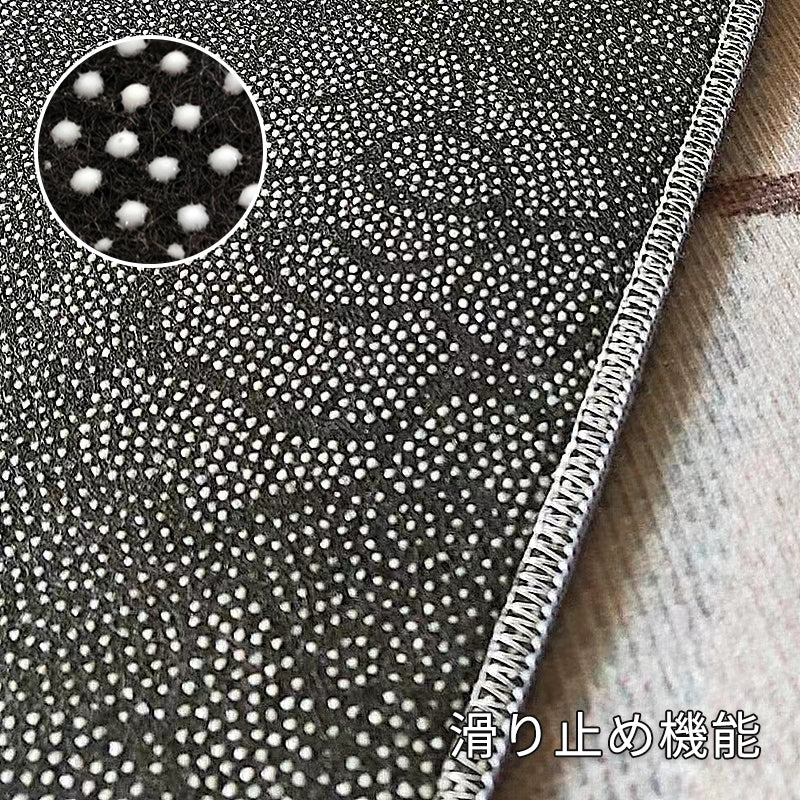 艶のある線が織りなす個性的なパターン、モダンでシンプルな部屋にも相性が良いです。裏には滑り止めが付いているため、ズレやめくれ上がりを防ぎます。