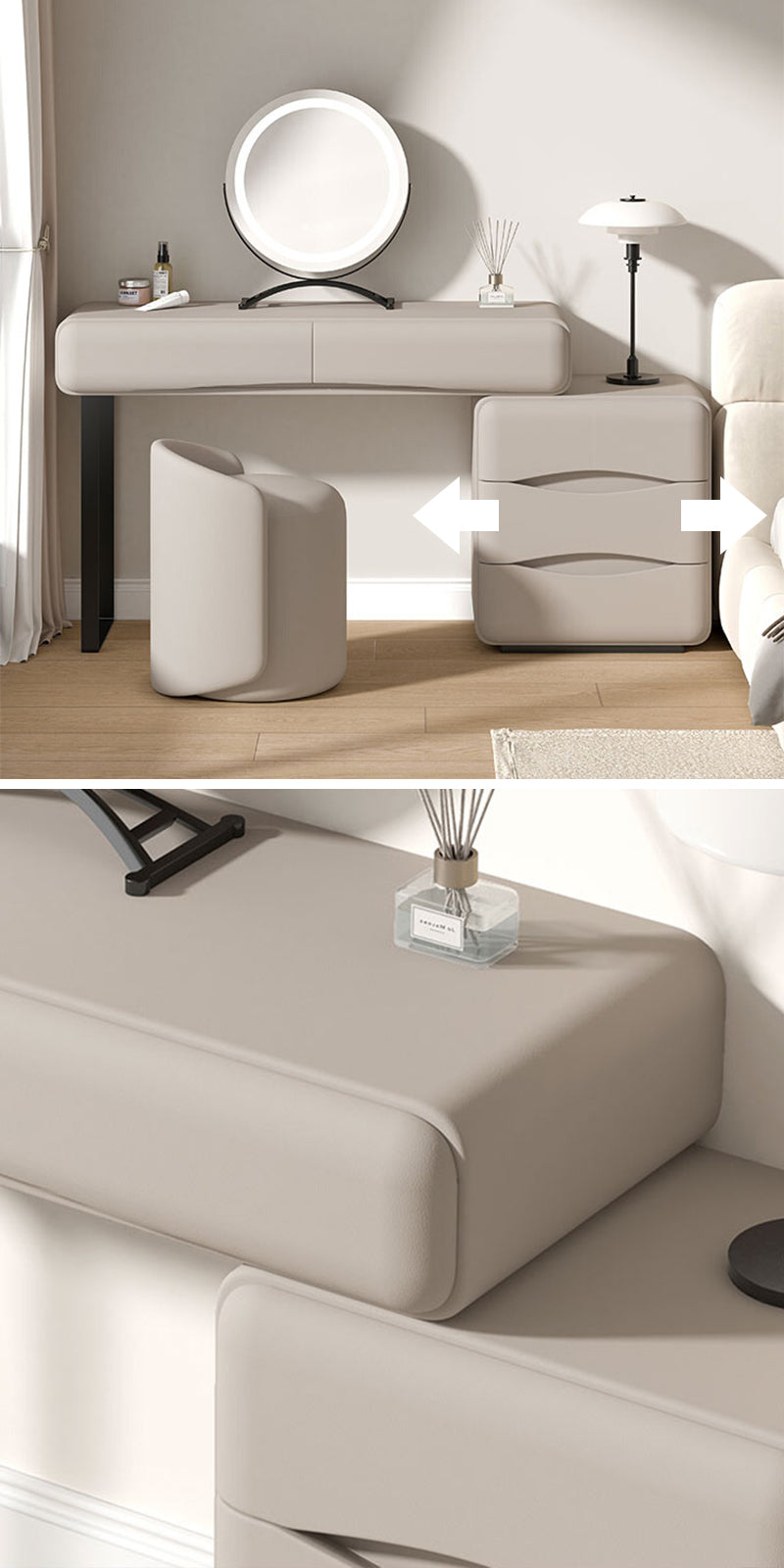 このドレッサーは、さまざまなニーズに合わせて拡張したり左右に移動したりできるため、
