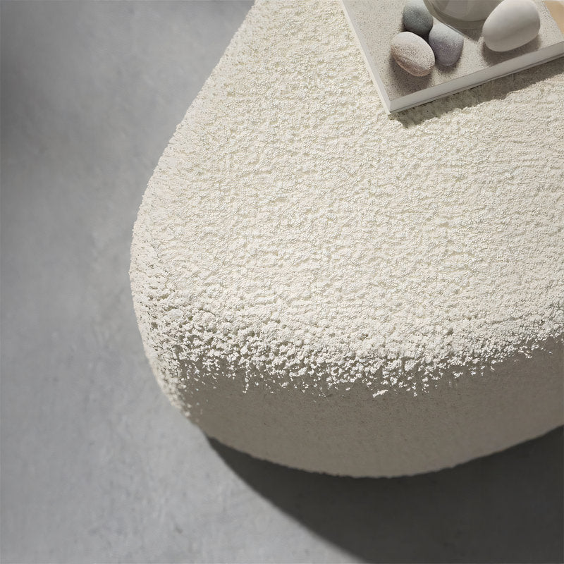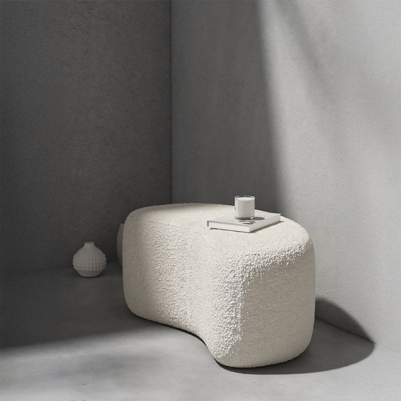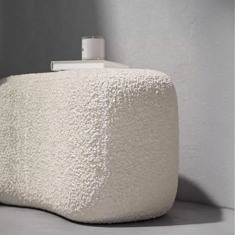 上質なラムフリース生地で仕上げられたベンチは、滑らかで柔らかな手触りを提供し、空間に優雅な雰囲気をもたらします。