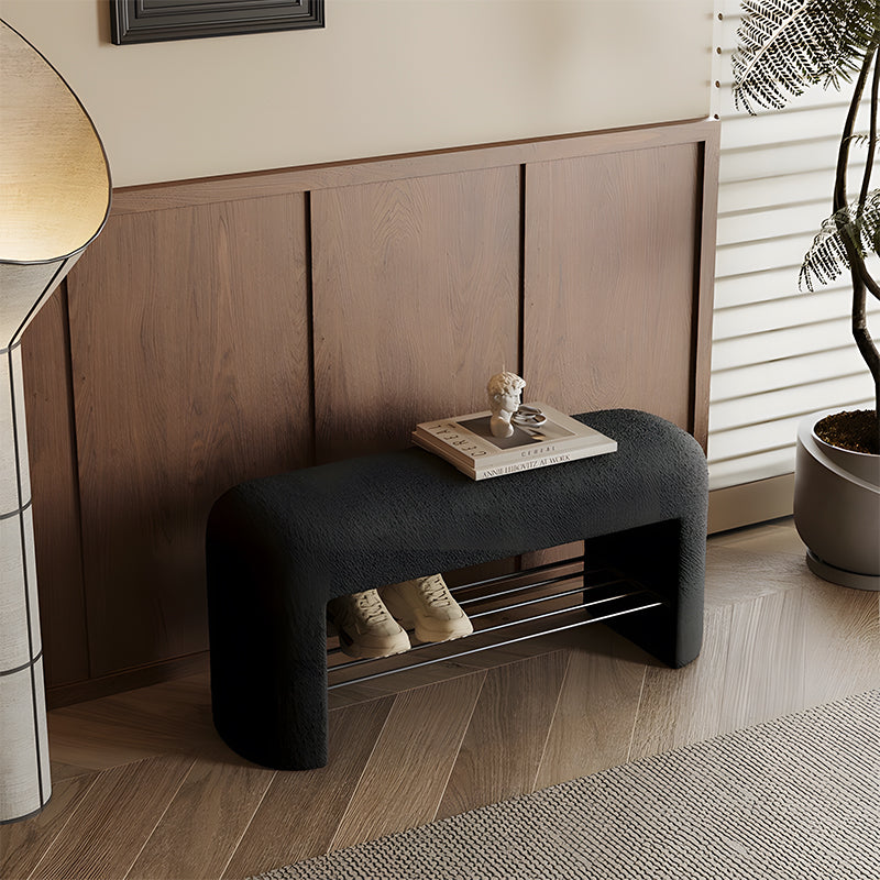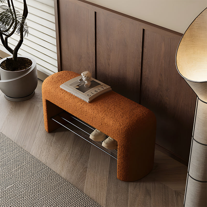 実用性を兼ね備えた多機能な設計が特徴です。座面下の収納スペースに加え、メタル製のシューズラック(靴棚)が一体化しており、玄関先での腰掛けと収納を両立。約7〜12kgの適度な重みがあり、転倒しにくい安定感も抜群です。