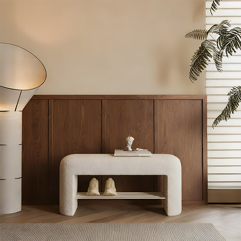 面倒な組み立てが不要な完成品でお届けします。玄関、リビング、寝室など、様々な場所で活躍し、空間に温かみのあるアクセントを加えます。デザイン性と機能性を両立させた、毎日の暮らしを豊かにするベンチです。