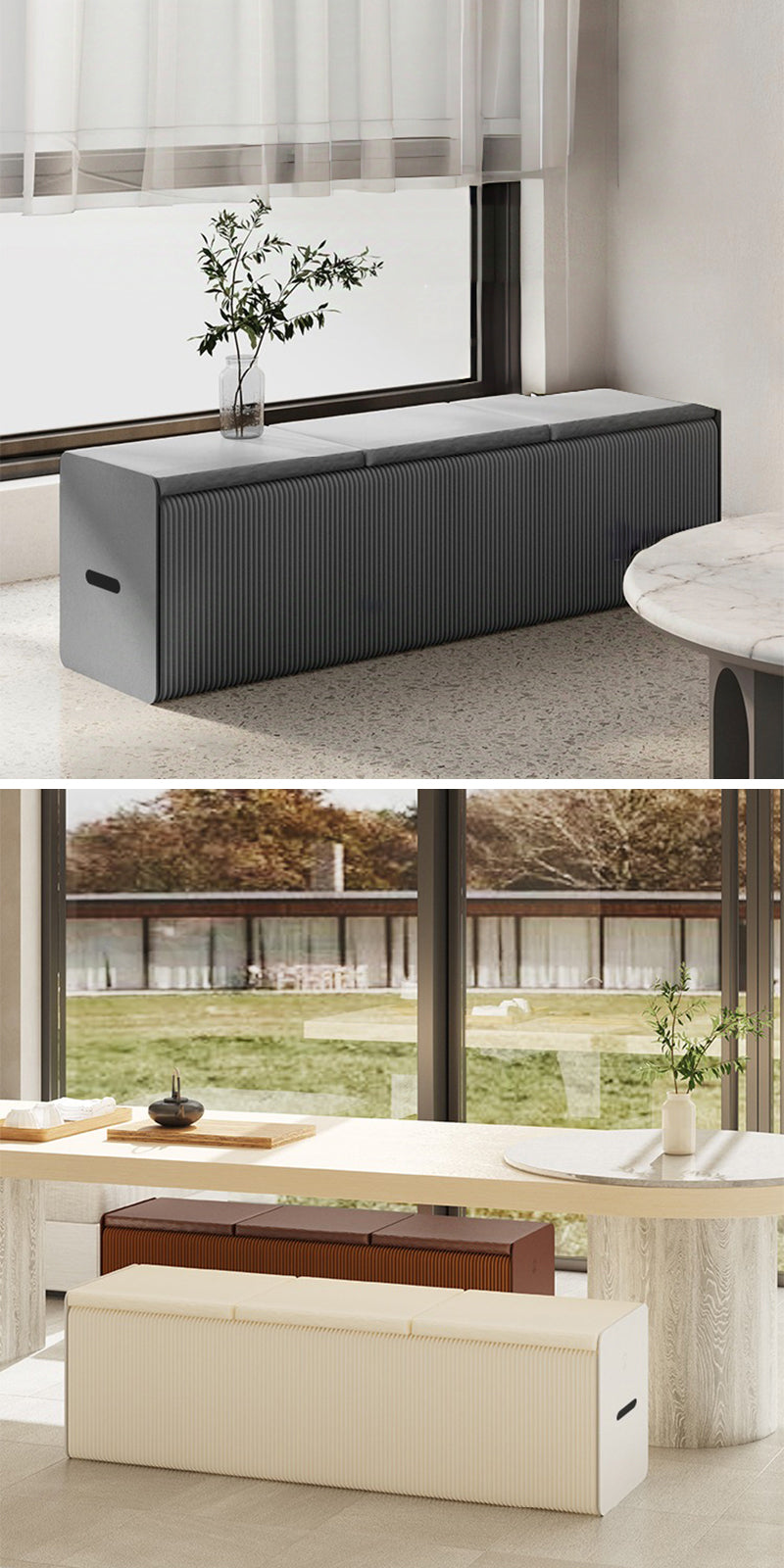 一人でも簡単に展開でき、急な来客時の臨時ベンチやサロン・待合室などの商用空間にも対応します。