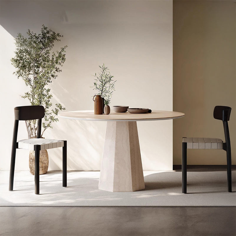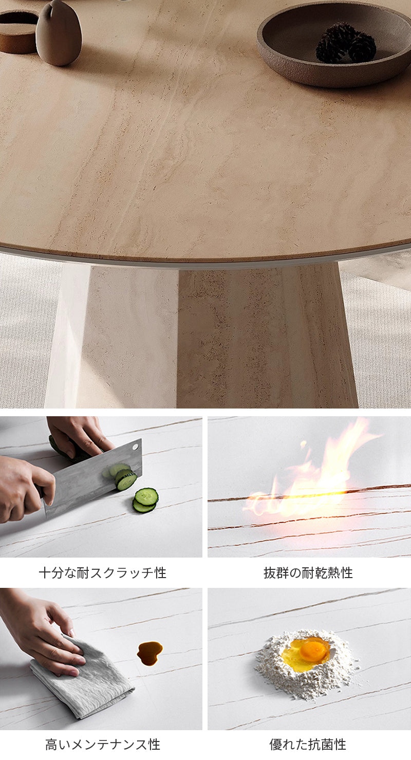 高級シントレードストーンの丸天板は、天然石のような穏やかな模様と柔らかな光沢が調和し、空間に落ち着いた上質感をもたらします。