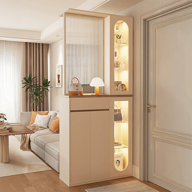 上質な半透明ガラスと精緻な木材が見事に調和し、洗練された空間を演出します。