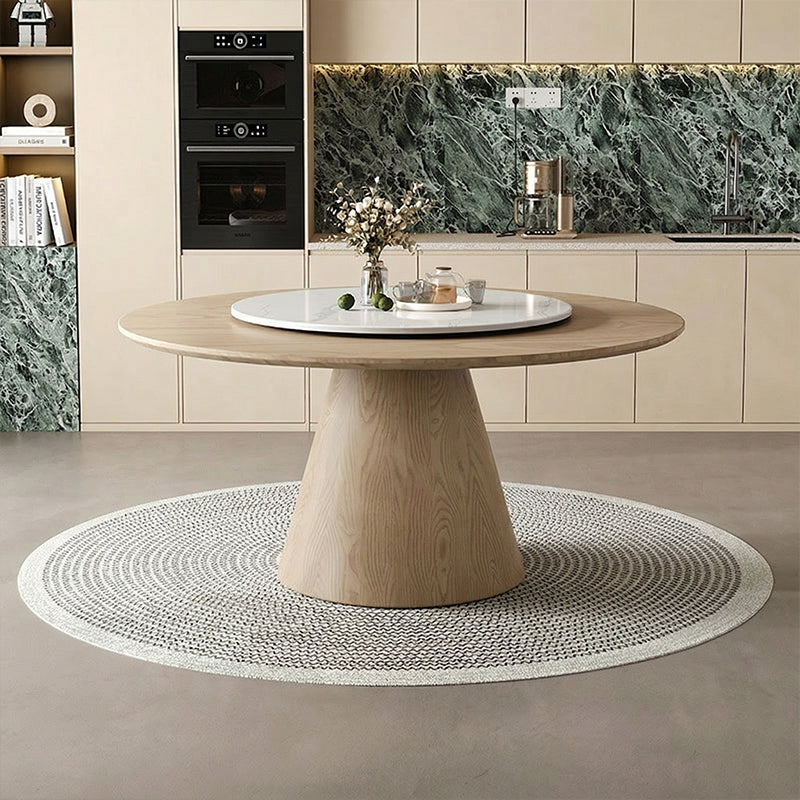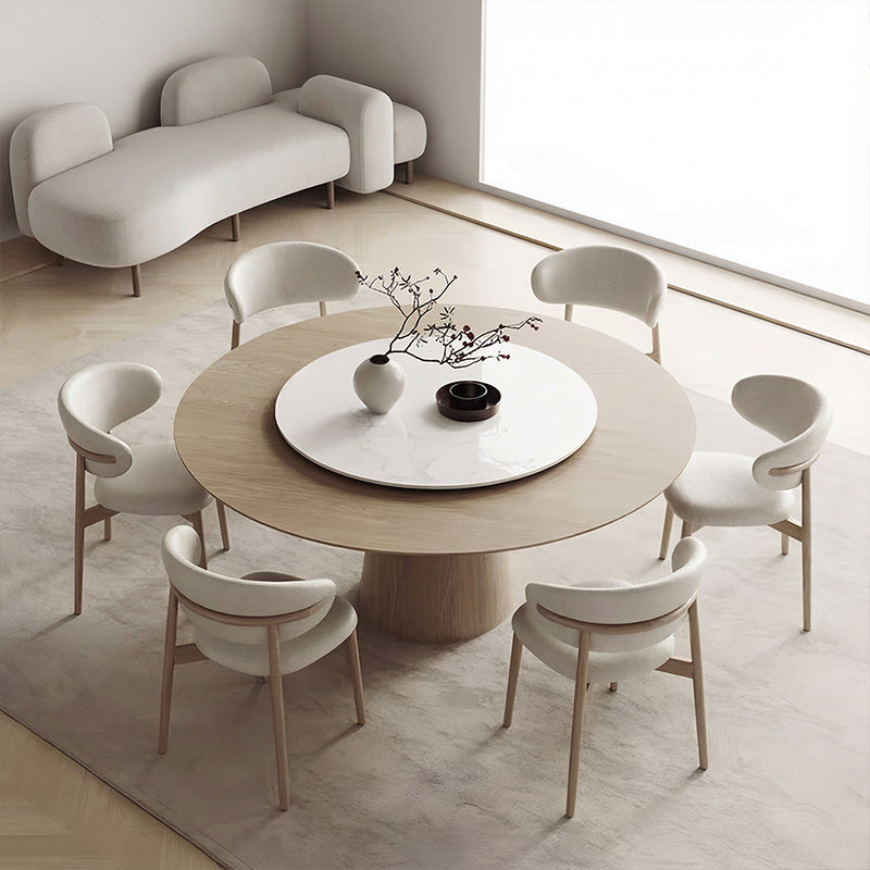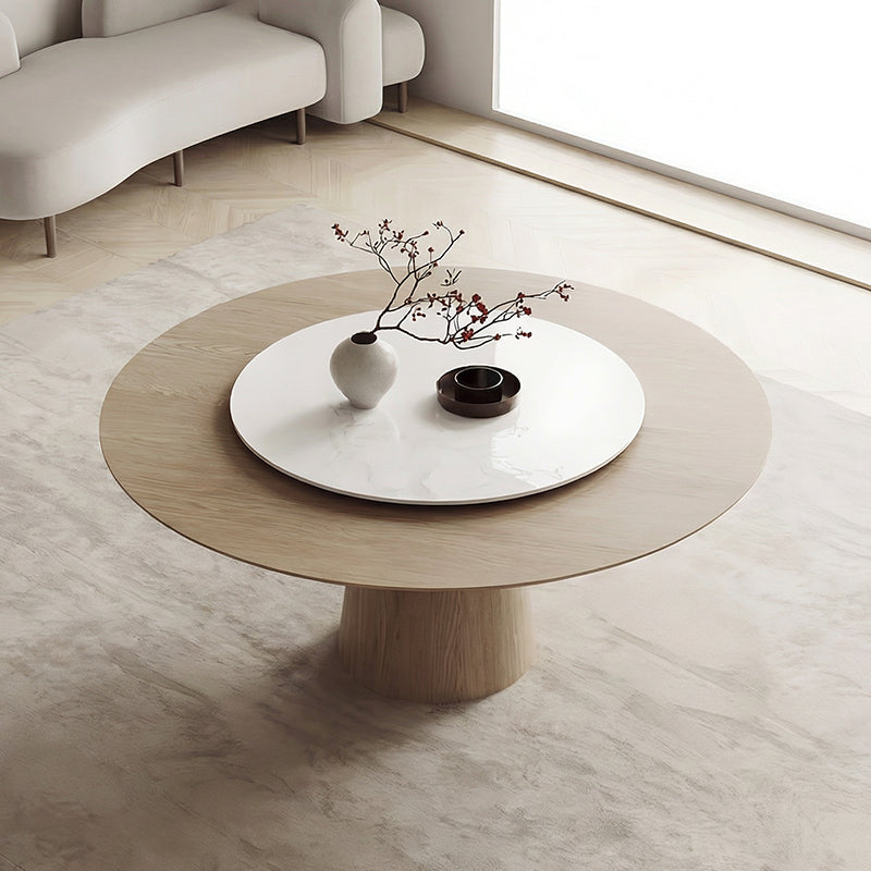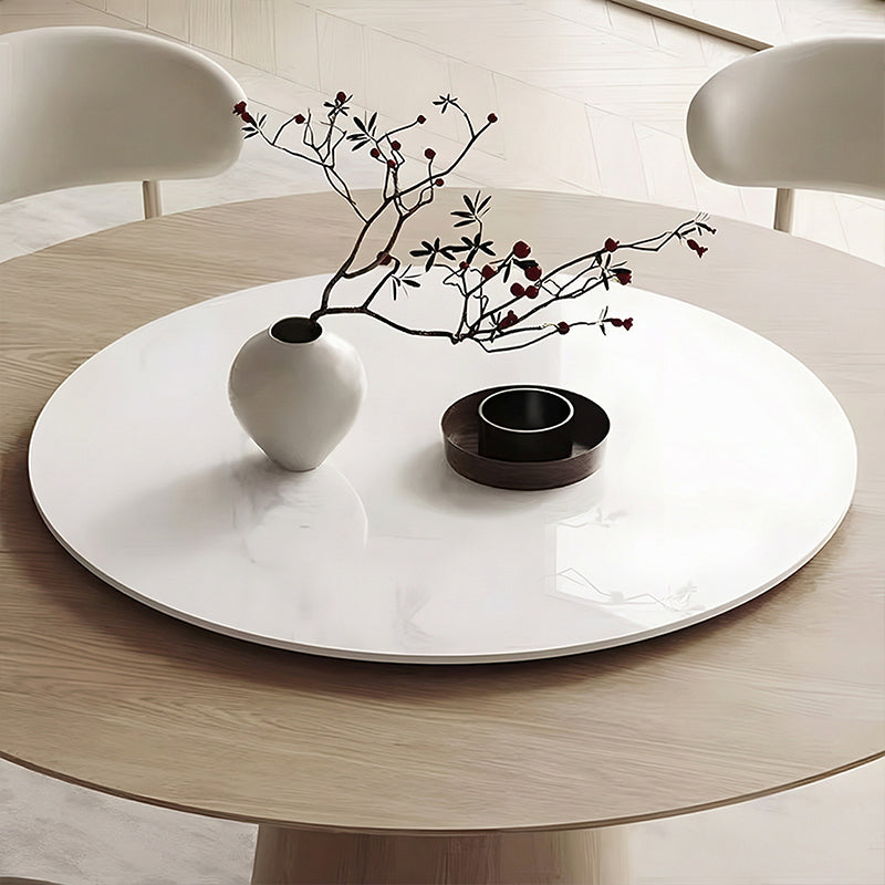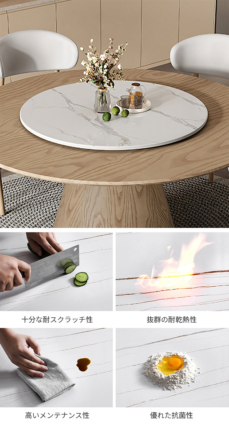 円形の天板と木製ベースが美しく調和し、空間に洗練された雰囲気をもたらします。