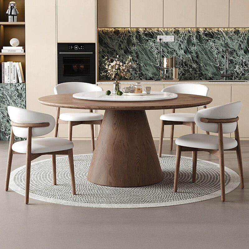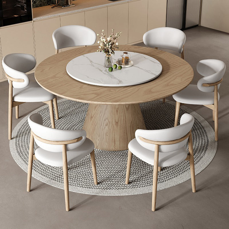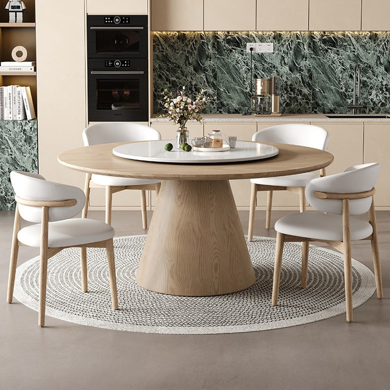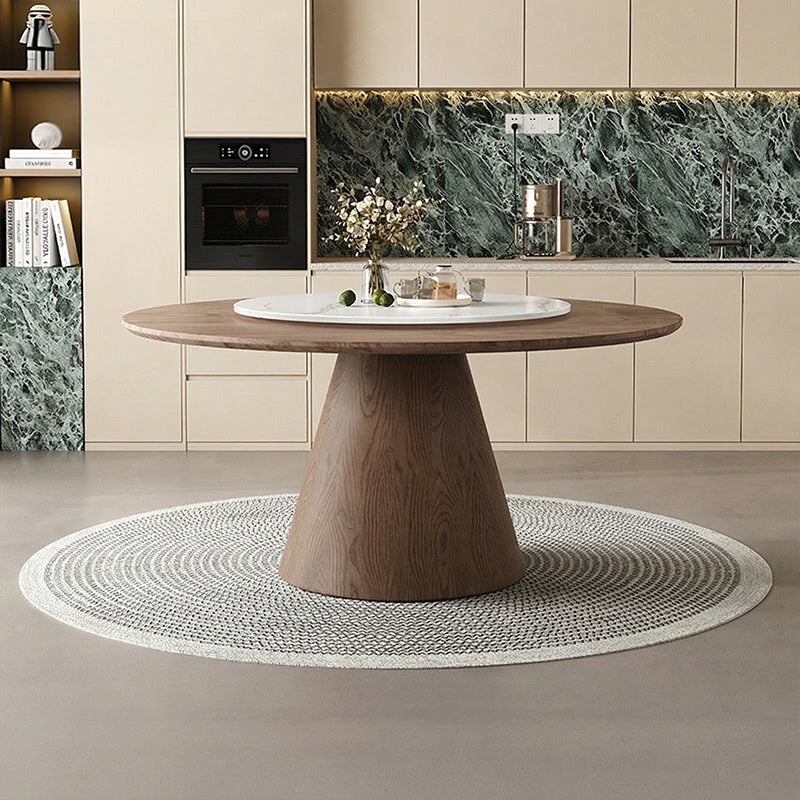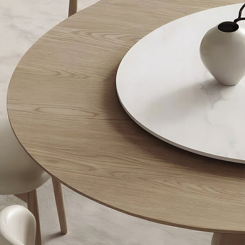 円形の天板と木製ベースが美しく調和し、空間に洗練された雰囲気をもたらします。