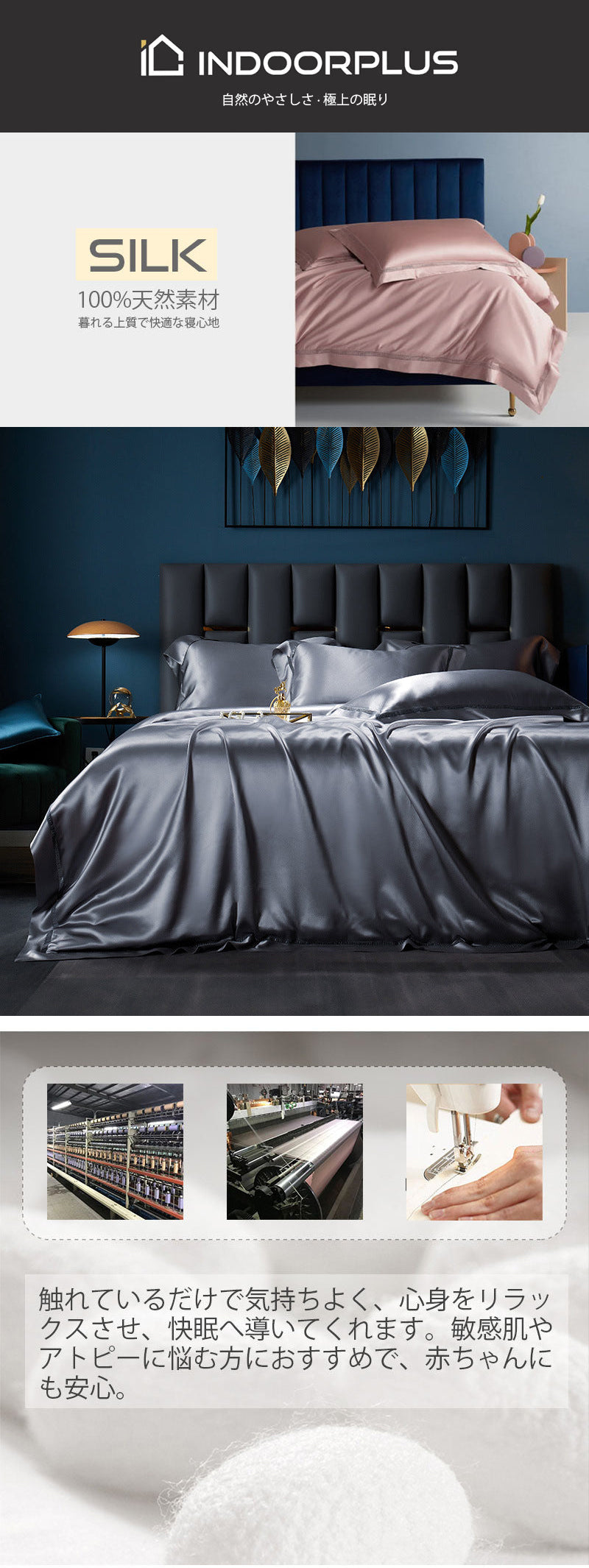 • 最高格の6A格の天然シルク100%素材